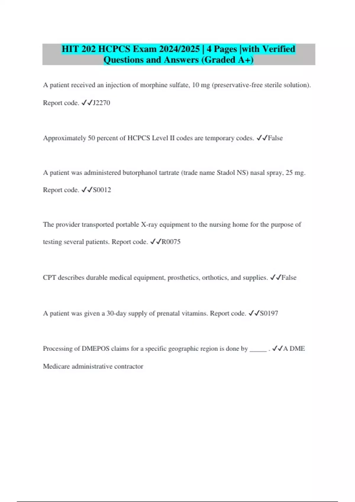 HIT 202 HCPCS Exam 2024/2025 | 4 Pages |with Verified Questions and Answers (Graded A+)