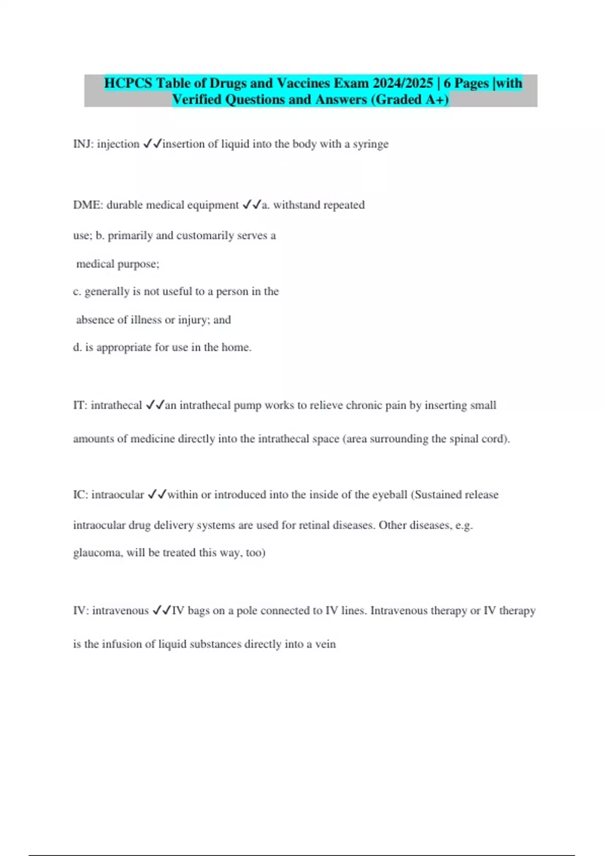 HCPCS Table of Drugs and Vaccines Exam 2024/2025 | 6 Pages |with Verified Questions and Answers (Graded A+)
