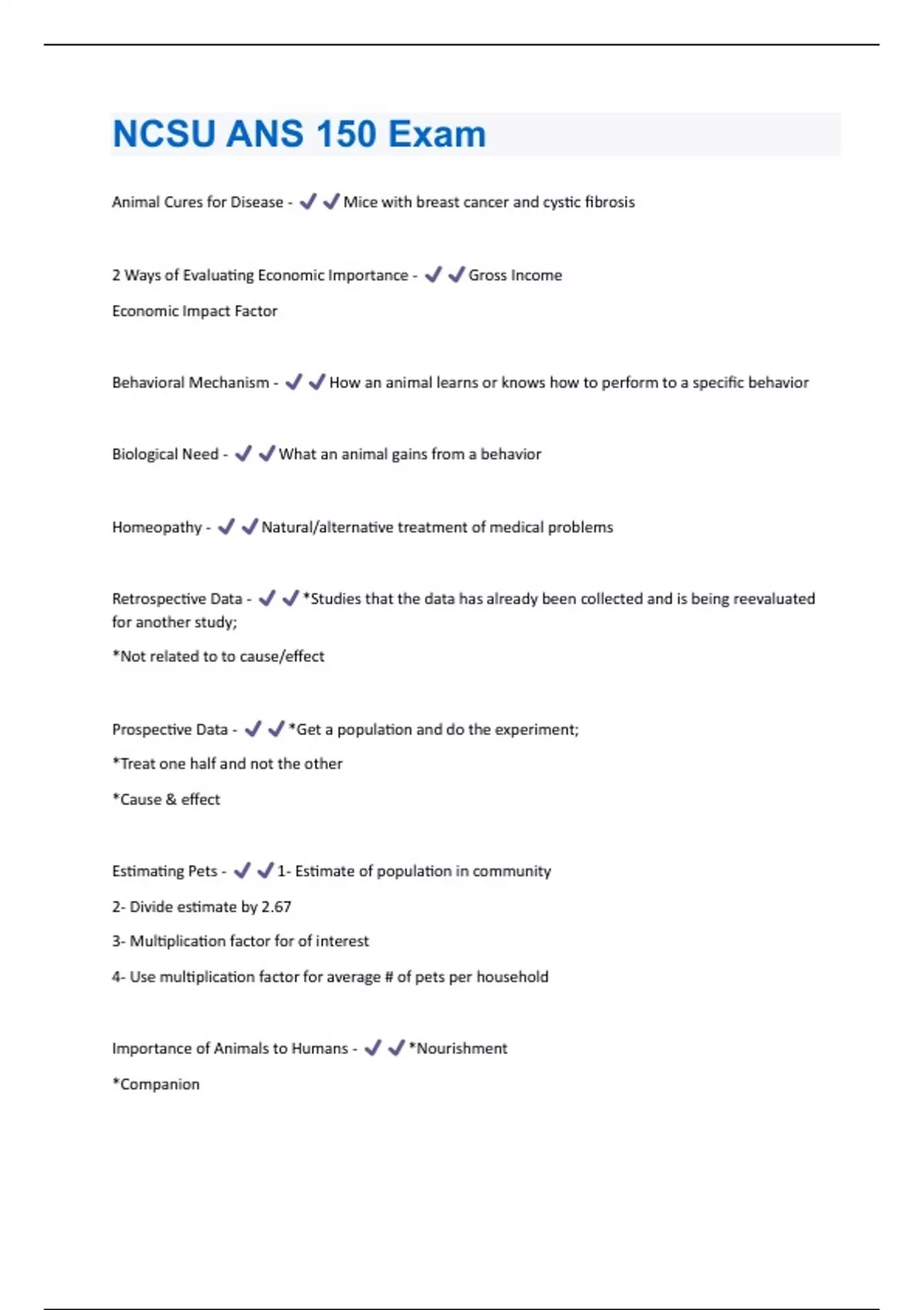 NCSU ANS 150 Exam latest questions and answers all are correct graded A+