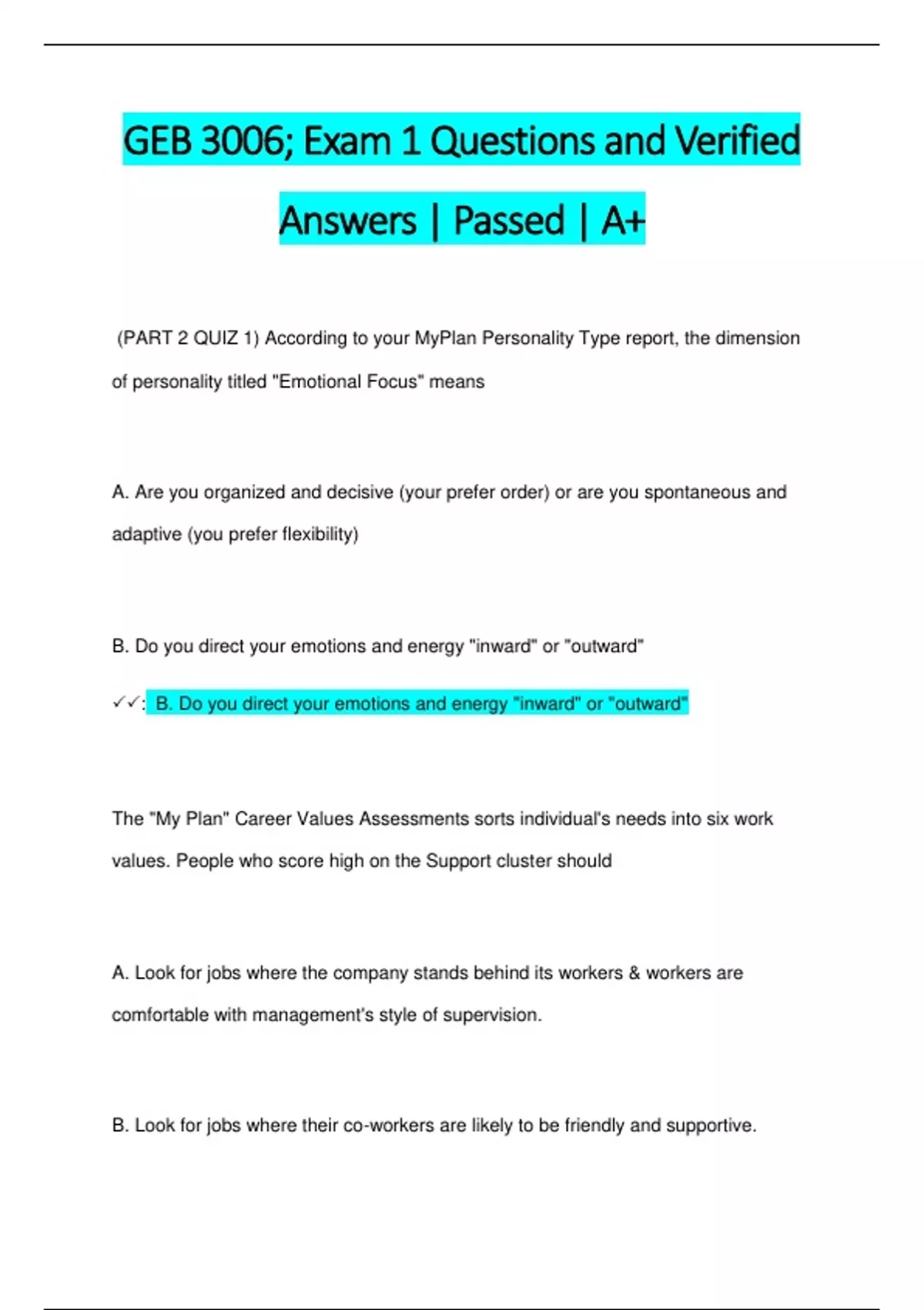 GEB 3006; Exam 1 Questions and Verified Answers | Passed | A+