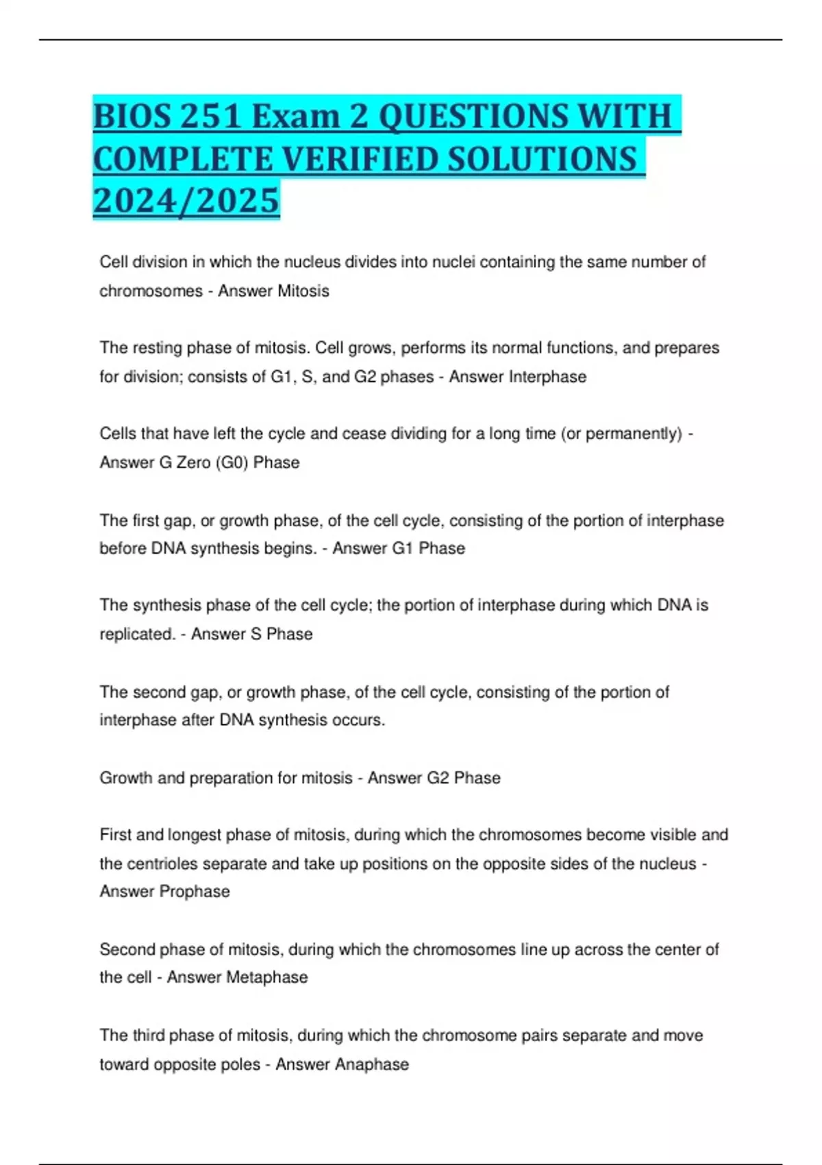 BIOS 251 Exam 2 QUESTIONS WITH COMPLETE VERIFIED SOLUTIONS 2024/2025