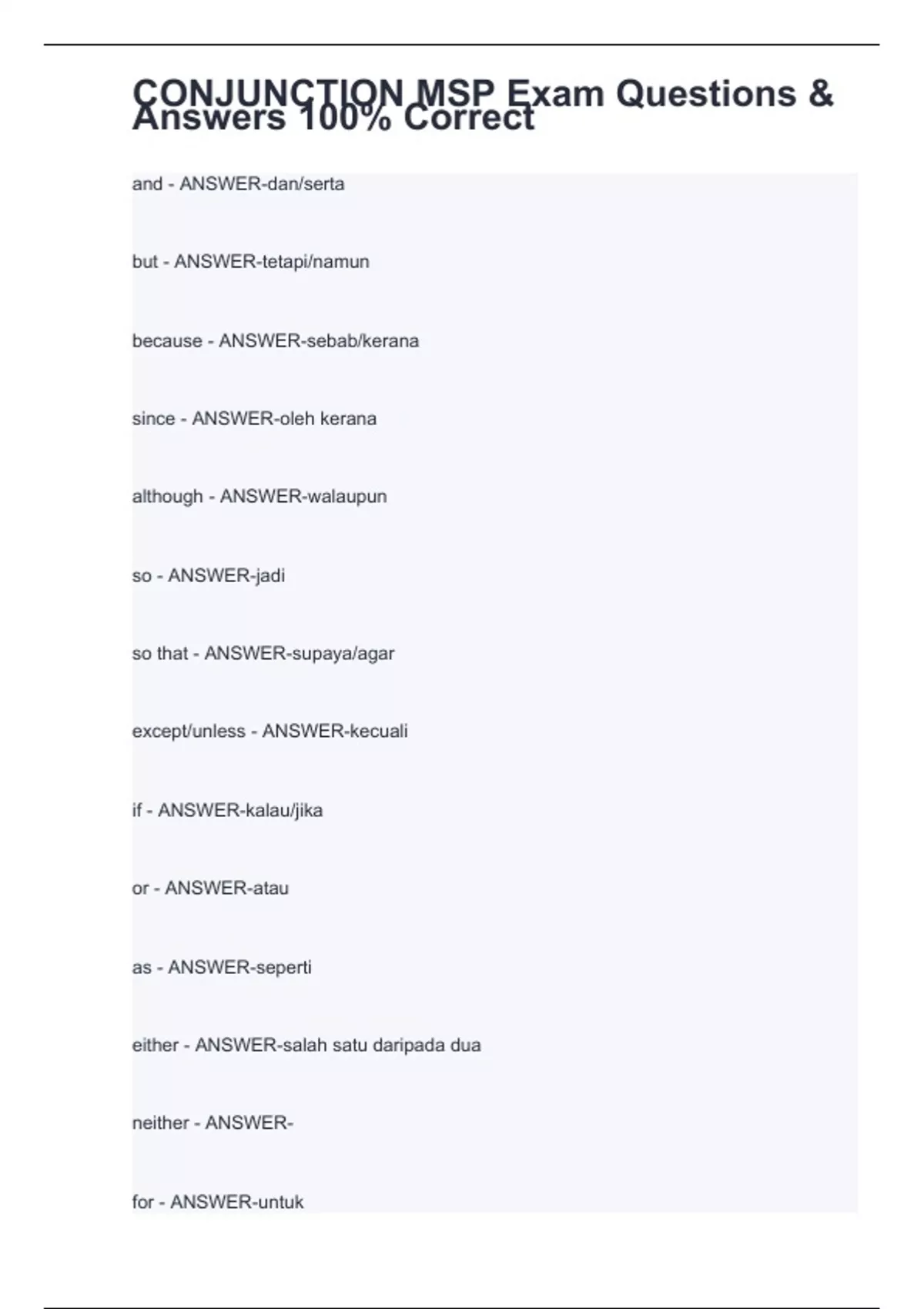 CONJUNCTION MSP Exam Questions & Answers 100% Correct