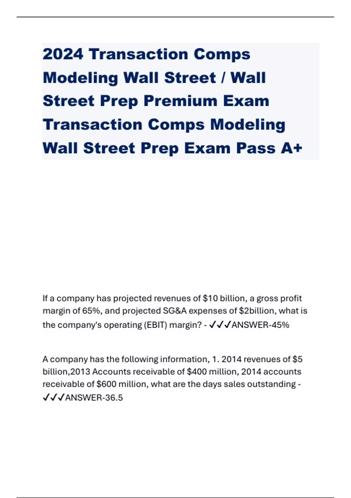 2024 Transaction Comps Modeling Wall Street / Wall Street Prep Premium Exam Transaction Comps Modeling Wall Street Prep Exam Pass A+