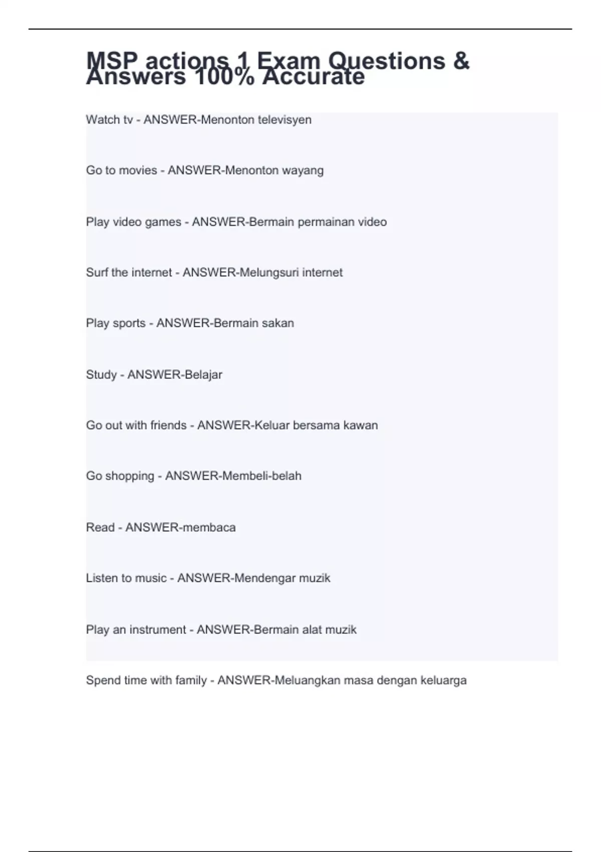 MSP actions 1 Exam Questions & Answers 100% Accurate