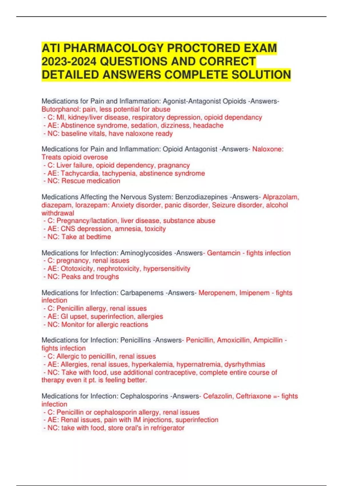 ATI PHARMACOLOGY PROCTORED EXAM QUESTIONS AND CORRECT DETAILED ANSWERS COMPLETE SOLUTION