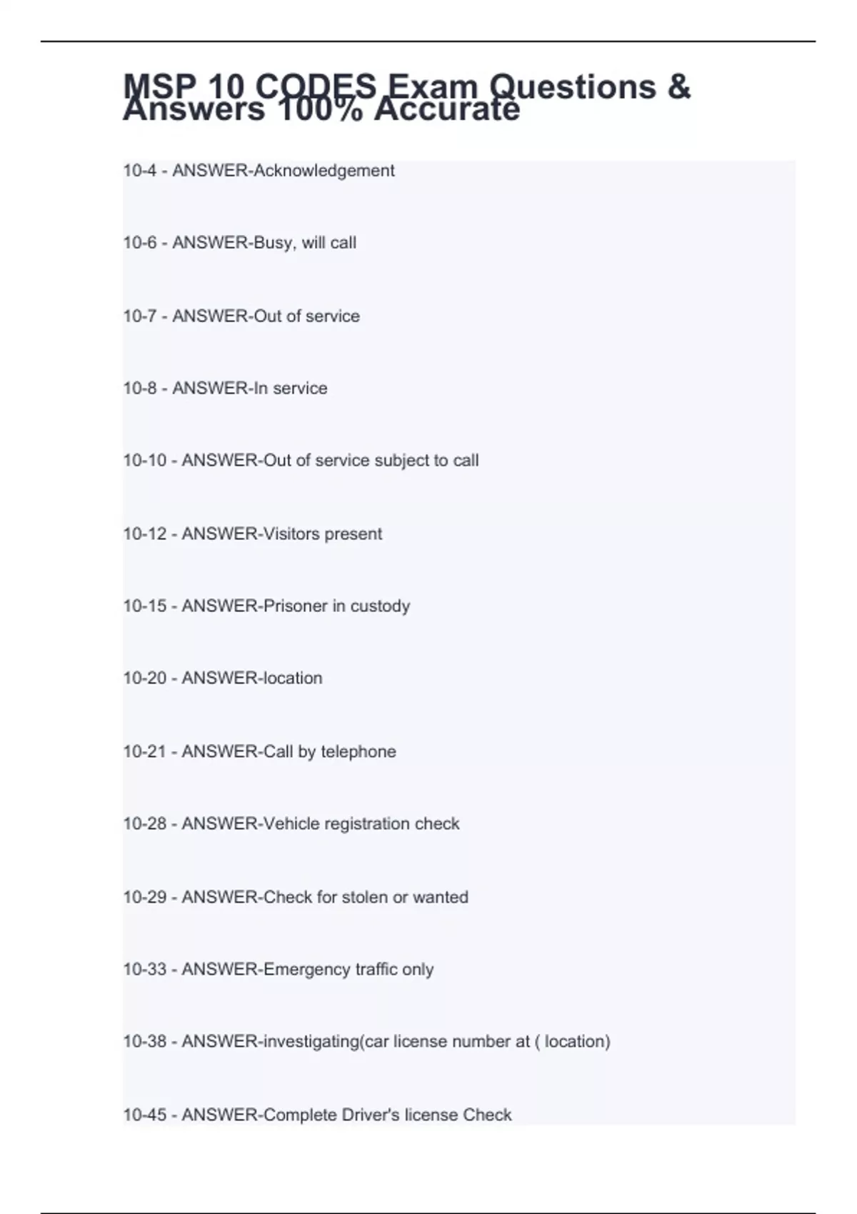 10-45 - ANSWER-Complete Driver's license Check