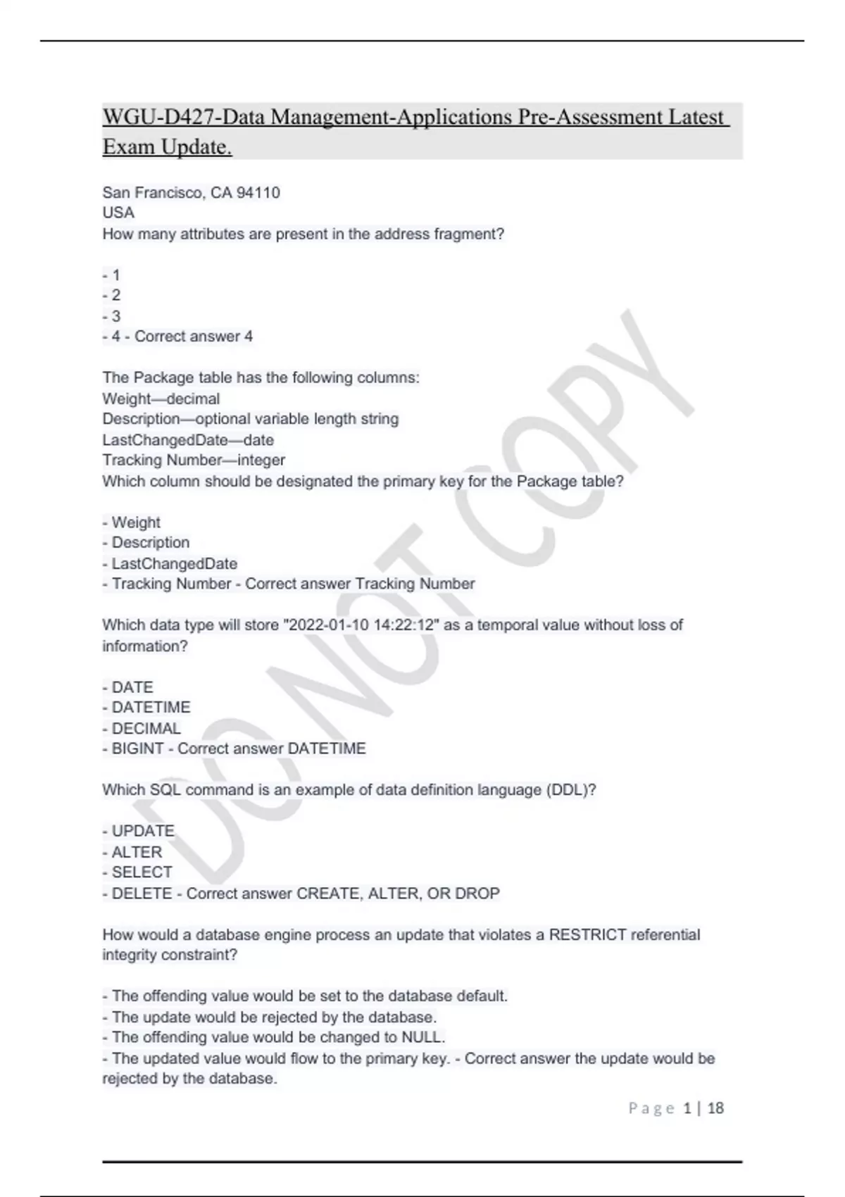 WGU-D427-Data Management-Applications Pre-Assessment Latest Exam UpdateWGU-D427-Data Management-Applications Pre-Assessment Latest Exam Update