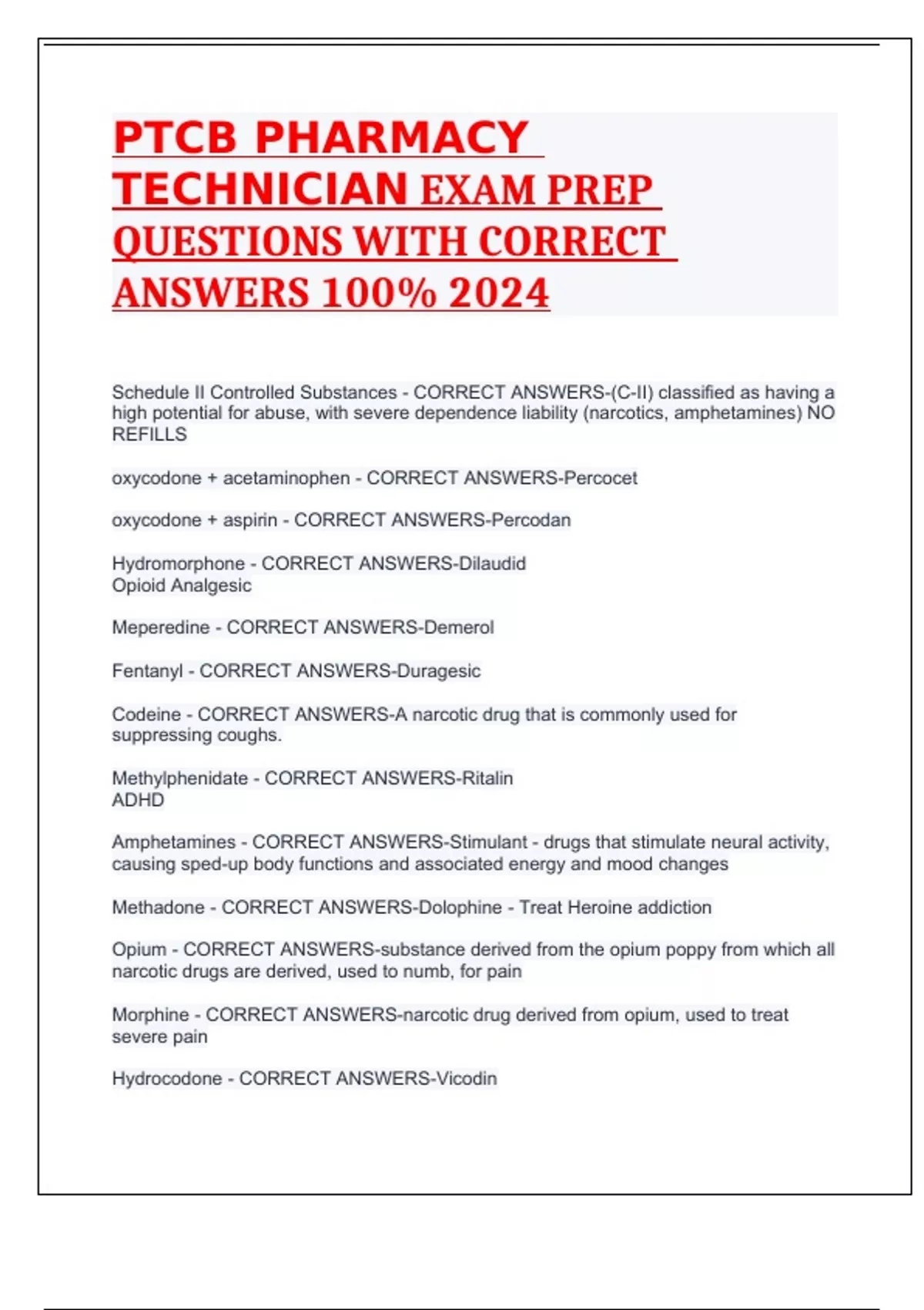 PTCB PHARMACY TECHNICIAN EXAM PREP QUESTIONS WITH CORRECT ANSWERS 100% 2024