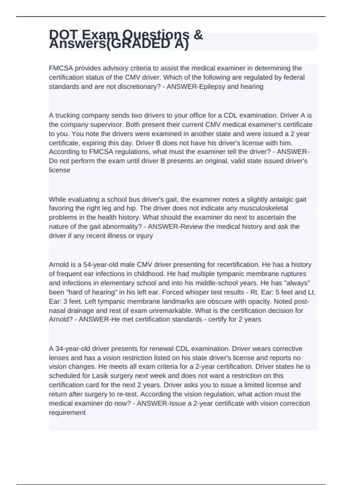 DOT Exam Questions & Answers(GRADED A)