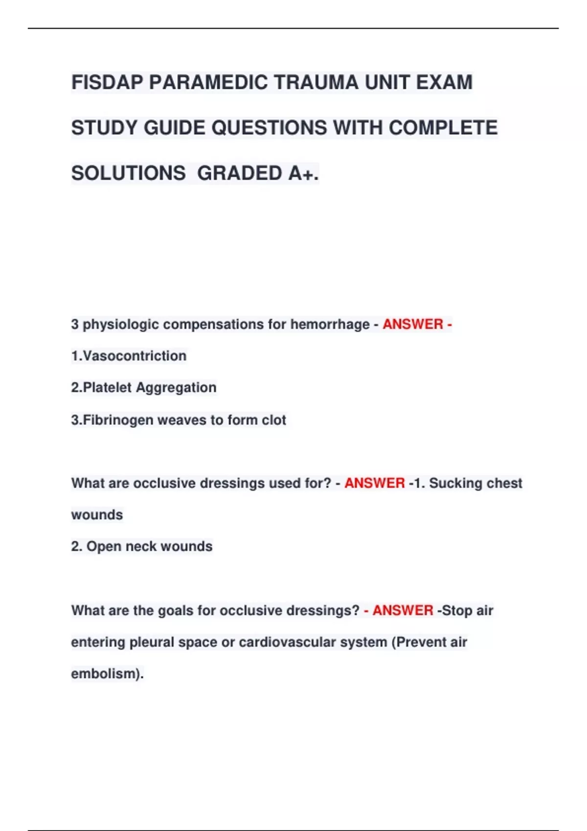 FISDAP PARAMEDIC TRAUMA UNIT EXAM STUDY GUIDE QUESTIONS WITH COMPLETE SOLUTIONS GRADED A+. FISDAP PARAMEDIC TRAUMA UNIT EXAM STUDY GUIDE QUESTIONS WITH COMPLETE SOLUTIONS GRADED A+. FISDAP PARAMEDIC TRAUMA UNIT EXAM STUDY GUIDE QUESTIONS WITH COMPLETE SOLUTIONS GRADED A+. FISDAP PARAMEDIC TRAUMA UNIT EXAM STUDY GUIDE QUESTIONS WITH COMPLETE SOLUTIONS GRADED A+. FISDAP PARAMEDIC TRAUMA UNIT EXAM STUDY GUIDE QUESTIONS WITH COMPLETE SOLUTIONS GRADED A+. FISDAP PARAMEDIC TRAUMA UNIT EXAM STUDY GUIDE QUESTIONS WITH COMPLETE SOLUTIONS GRADED A+. FISDAP PARAMEDIC TRAUMA UNIT EXAM STUDY GUIDE QUESTIONS WITH COMPLETE SOLUTIONS GRADED A+. FISDAP PARAMEDIC TRAUMA UNIT EXAM STUDY GUIDE QUESTIONS WITH COMPLETE SOLUTIONS GRADED A+. FISDAP PARAMEDIC TRAUMA UNIT EXAM STUDY GUIDE QUESTIONS WITH COMPLETE SOLUTIONS GRADED A+.
