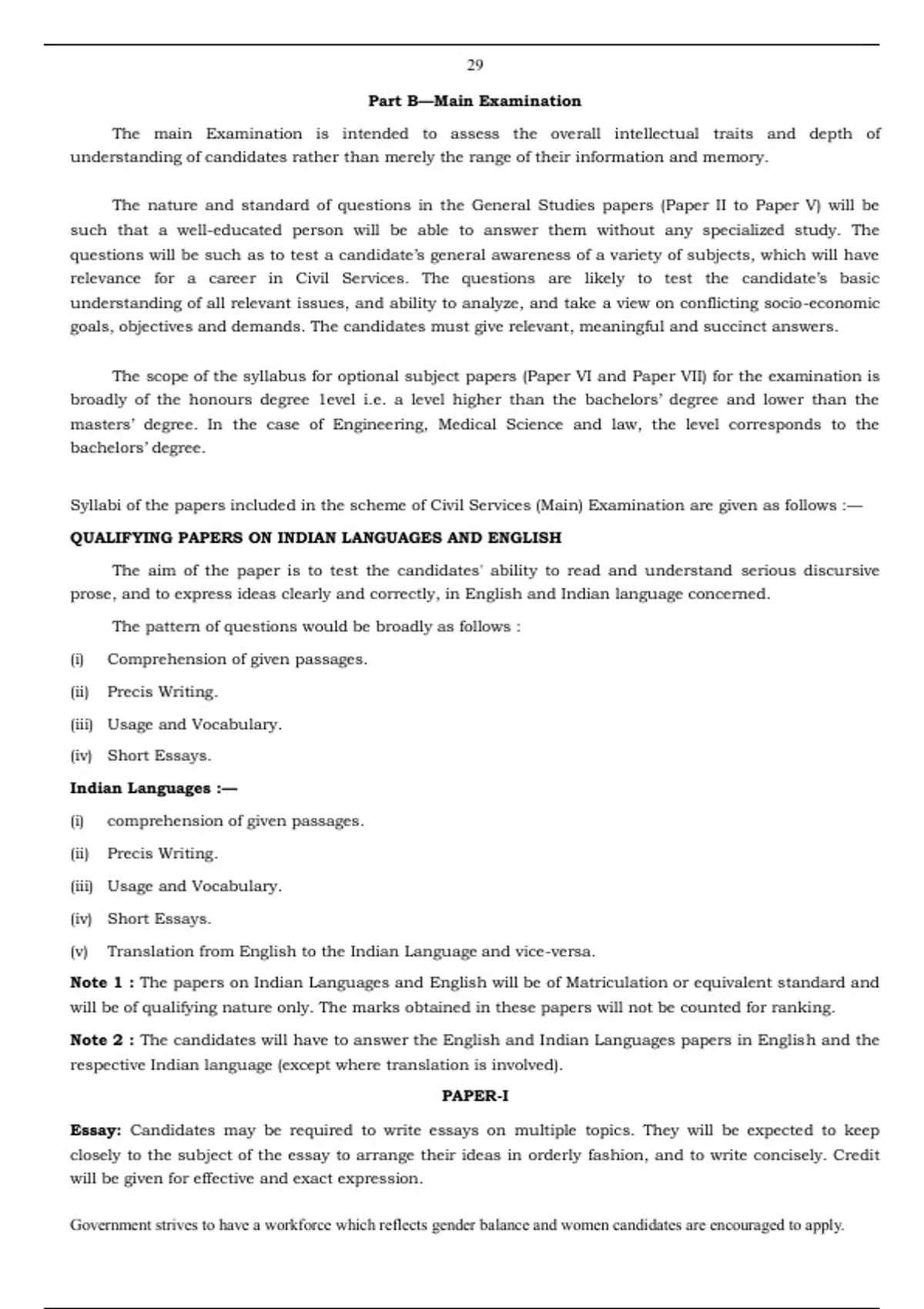 Syllabi of the papers included in the scheme of Civil Services (Main) Examination are given as follows :