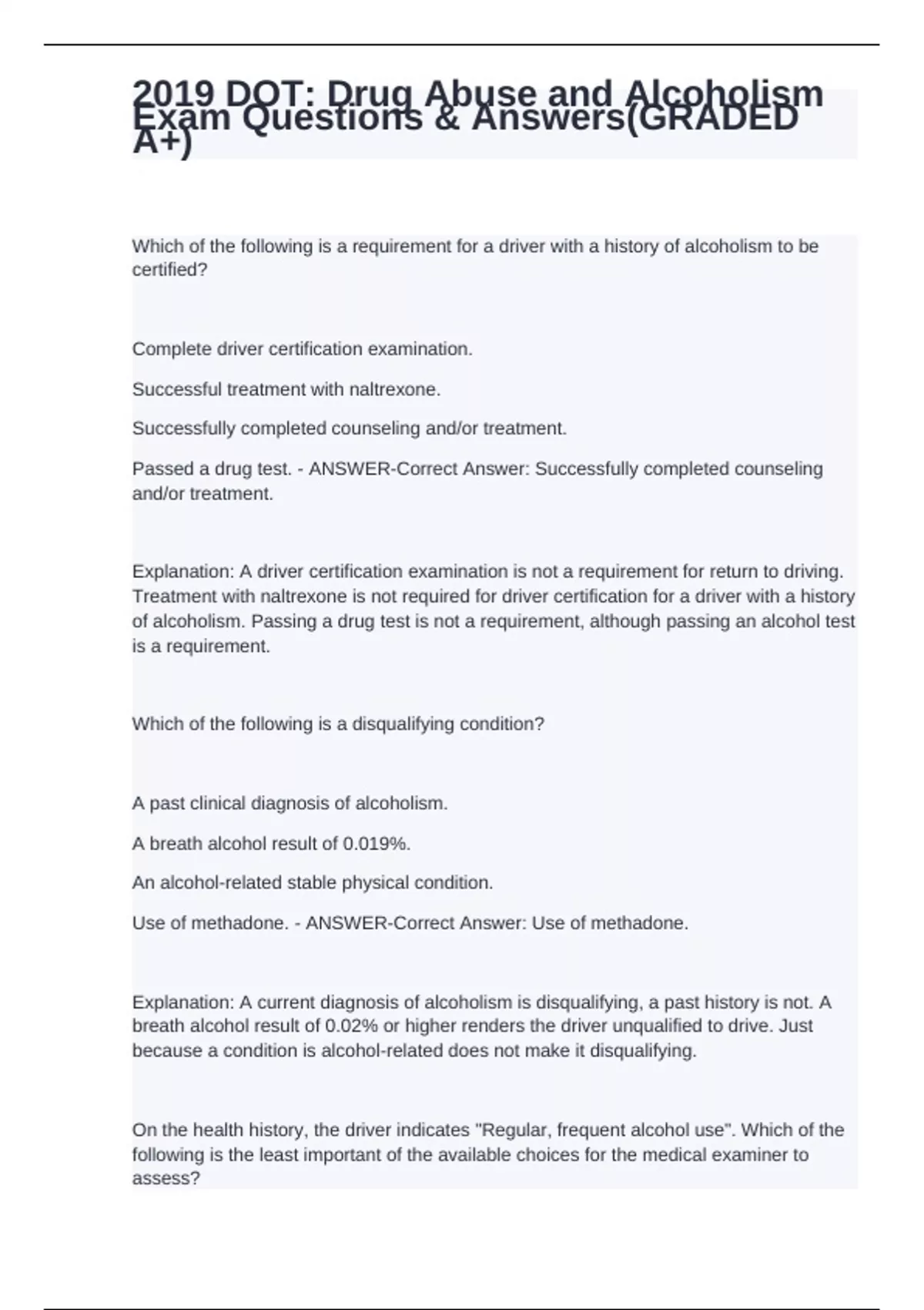 Which of the following is a requirement for a driver with a history of alcoholism to be