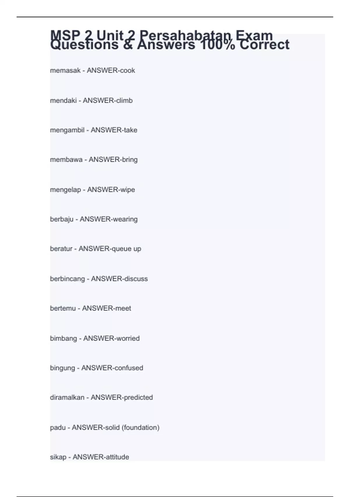 MSP 2 Unit 2 Persahabatan Exam Questions & Answers 100% Correct