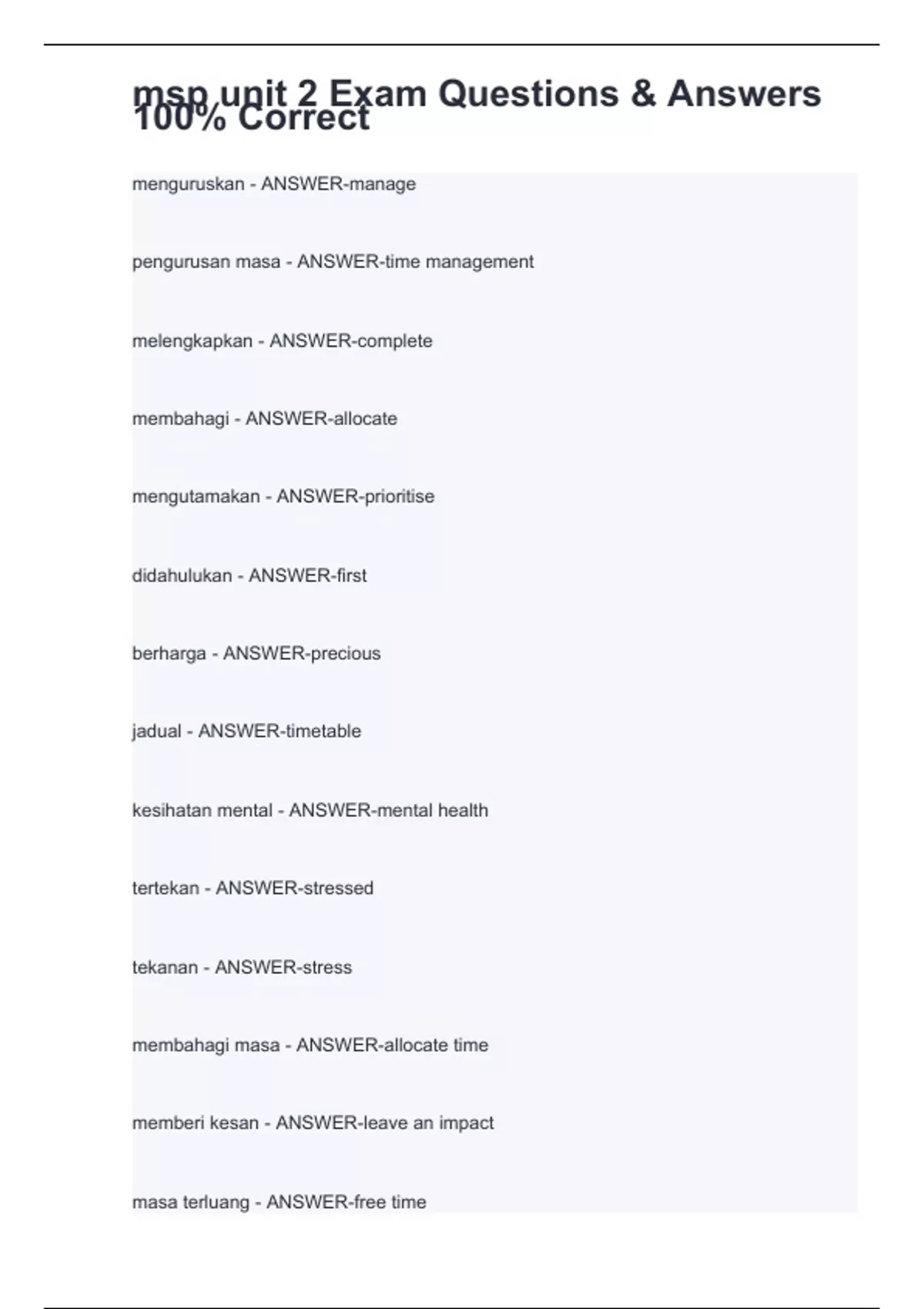 menguruskan - ANSWER-manage pengurusan masa - ANSWER-time management melengkapkan - ANSWER-complete membahagi - ANSWER-allocate mengutamakan - ANSWER-prioritise didahulukan - ANSWER-first berharga - ANSWER-precious jadual - ANSWER-timetable kesihatan mental - ANSWER-mental health tertekan - ANSWER-stressed tekanan - ANSWER-stress membahagi masa - ANSWER-allocate time