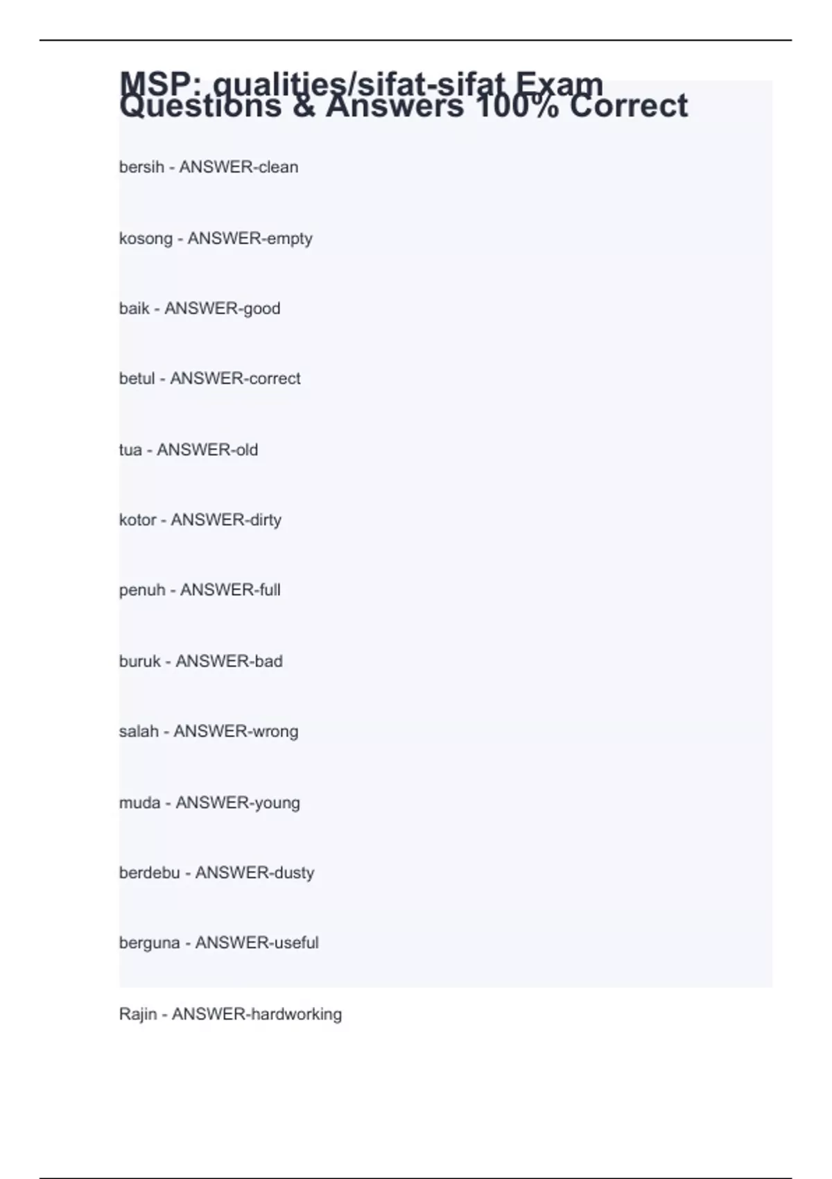 MSP: qualities/sifat-sifat Exam Questions & Answers 100% Correct