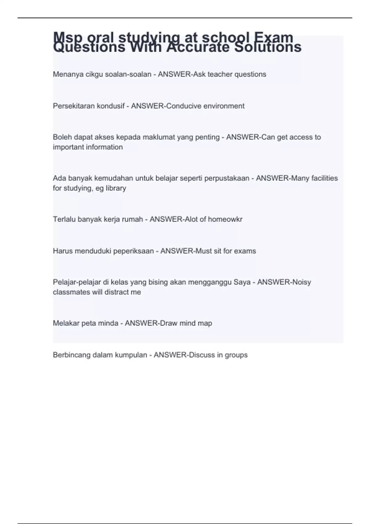 Pelajar-pelajar di kelas yang bising akan mengganggu Saya - ANSWER-Noisy classmates will distract me