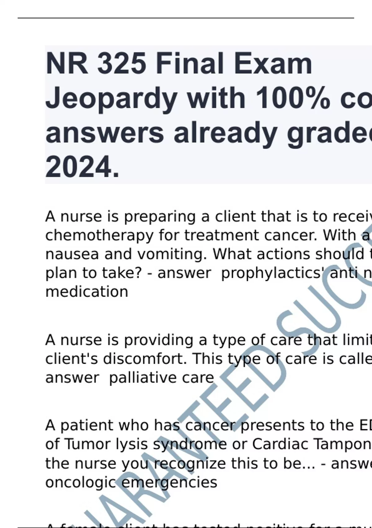 NR 325 Final Exam Jeopardy with 100% correct answers already graded A+ 2024.