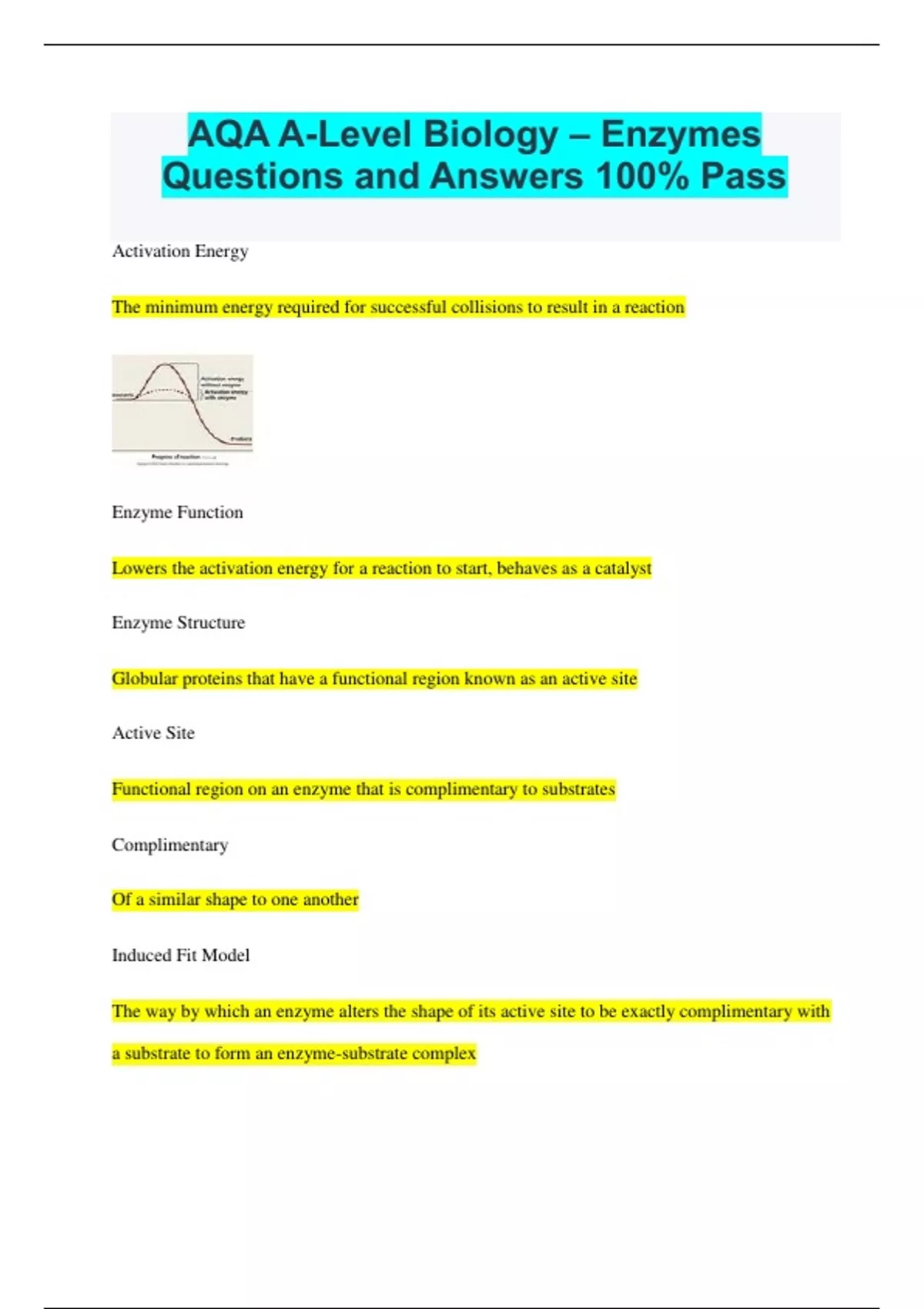 AQA A-Level Biology – Enzymes Questions and Answers 100% Pass 2024