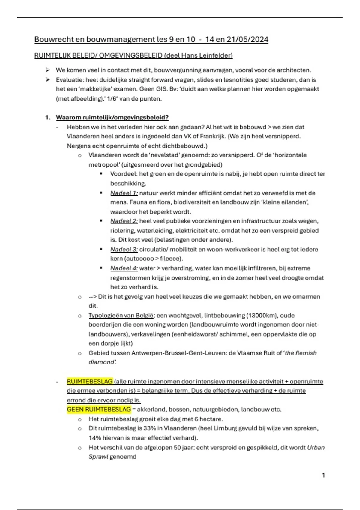 RUIMTELIJK BELEID/ OMGEVINGSBELEID (deel Hans Leinfelder)