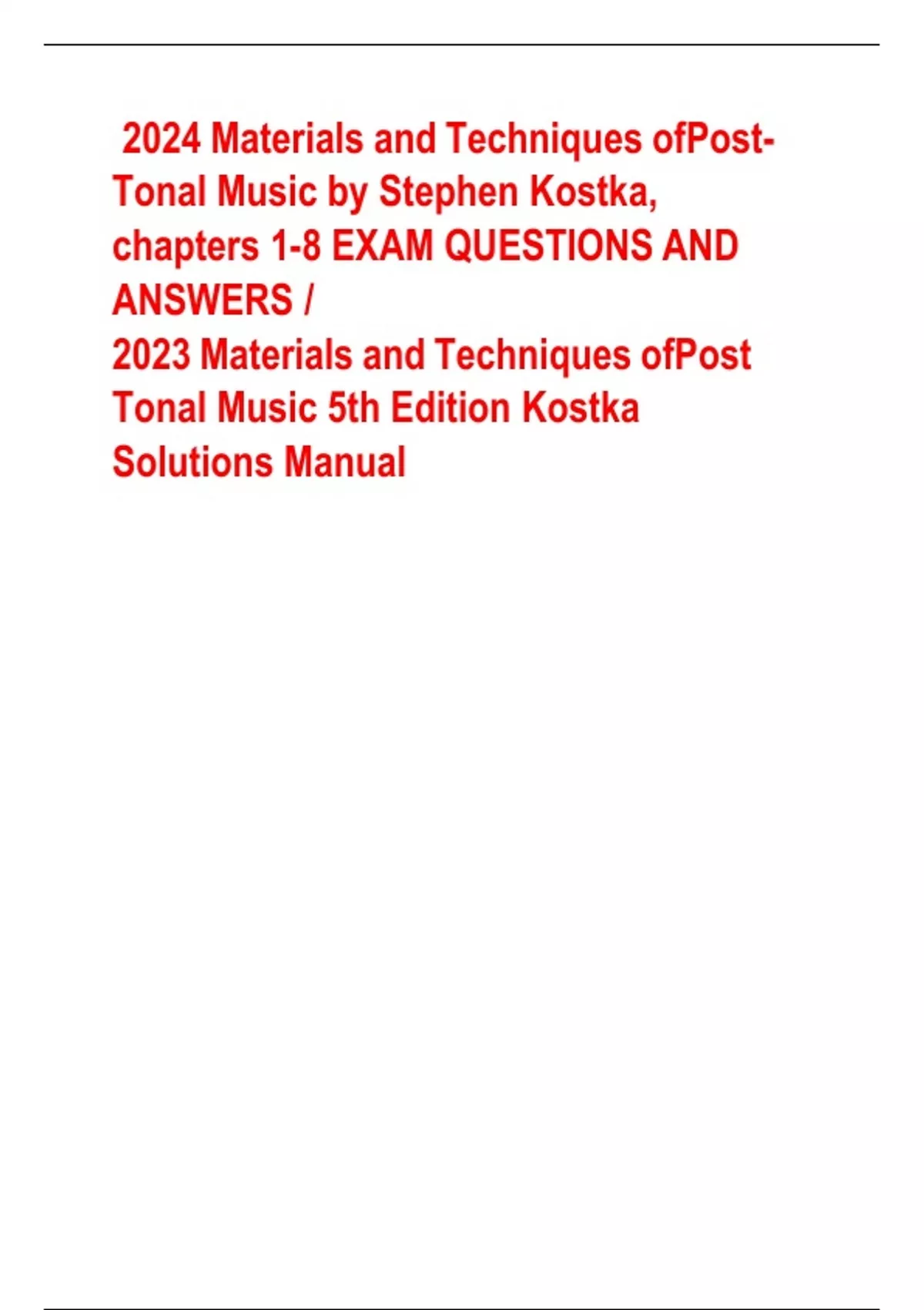 2024 Materials and Techniques ofPostTonal Music by Stephen Kostka, chapters 1-8 EXAM QUESTIONS AND ANSWERS / 2023 Materials and Techniques ofPost Tonal Music 5th Edition Kostka Solutions Manual C1 cycle - ANSWER-0 1 2 3 4 5 6 7 8 9 10 11 (chromaticscal