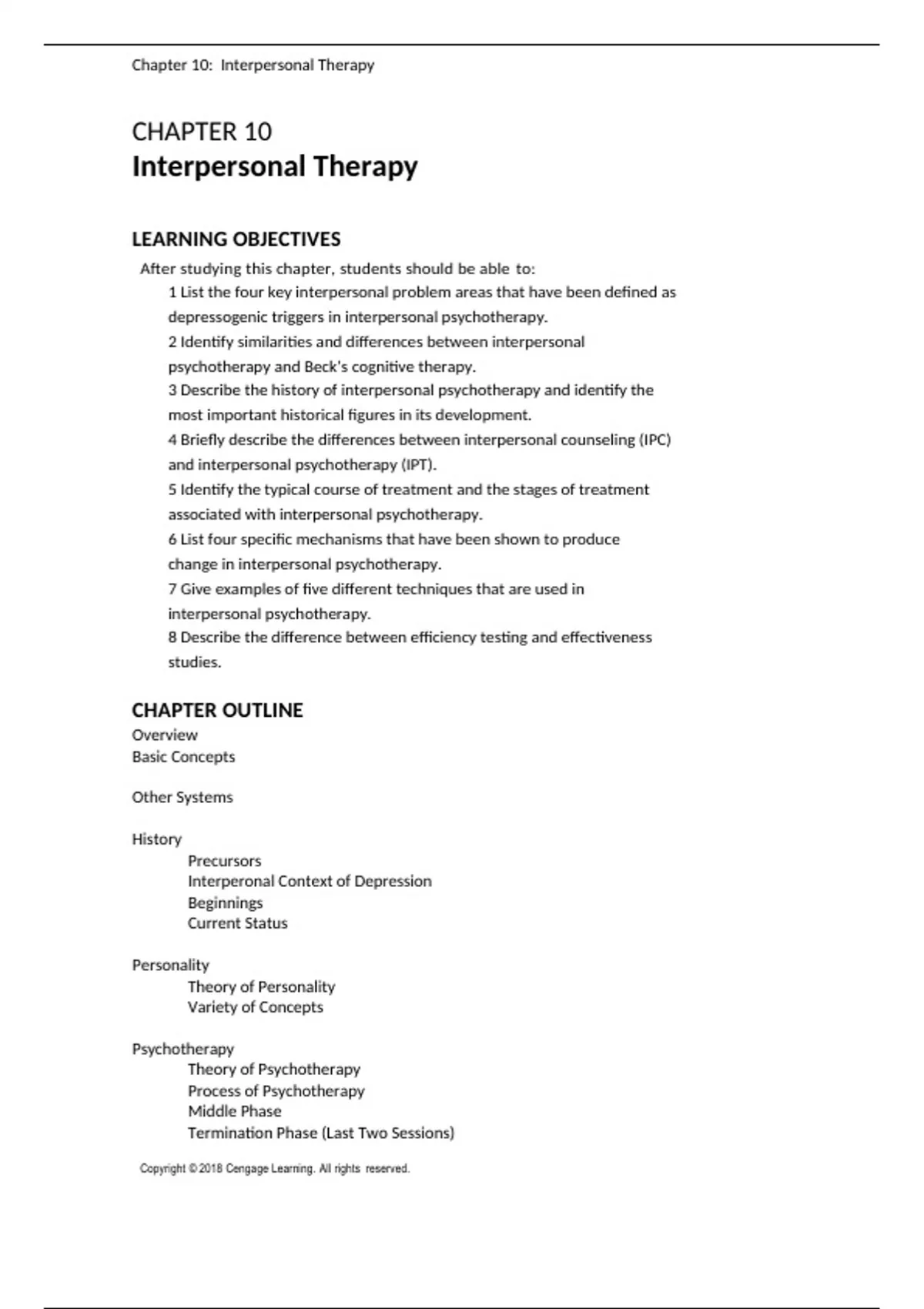 , Chapter 10: Interpersonal Therapy