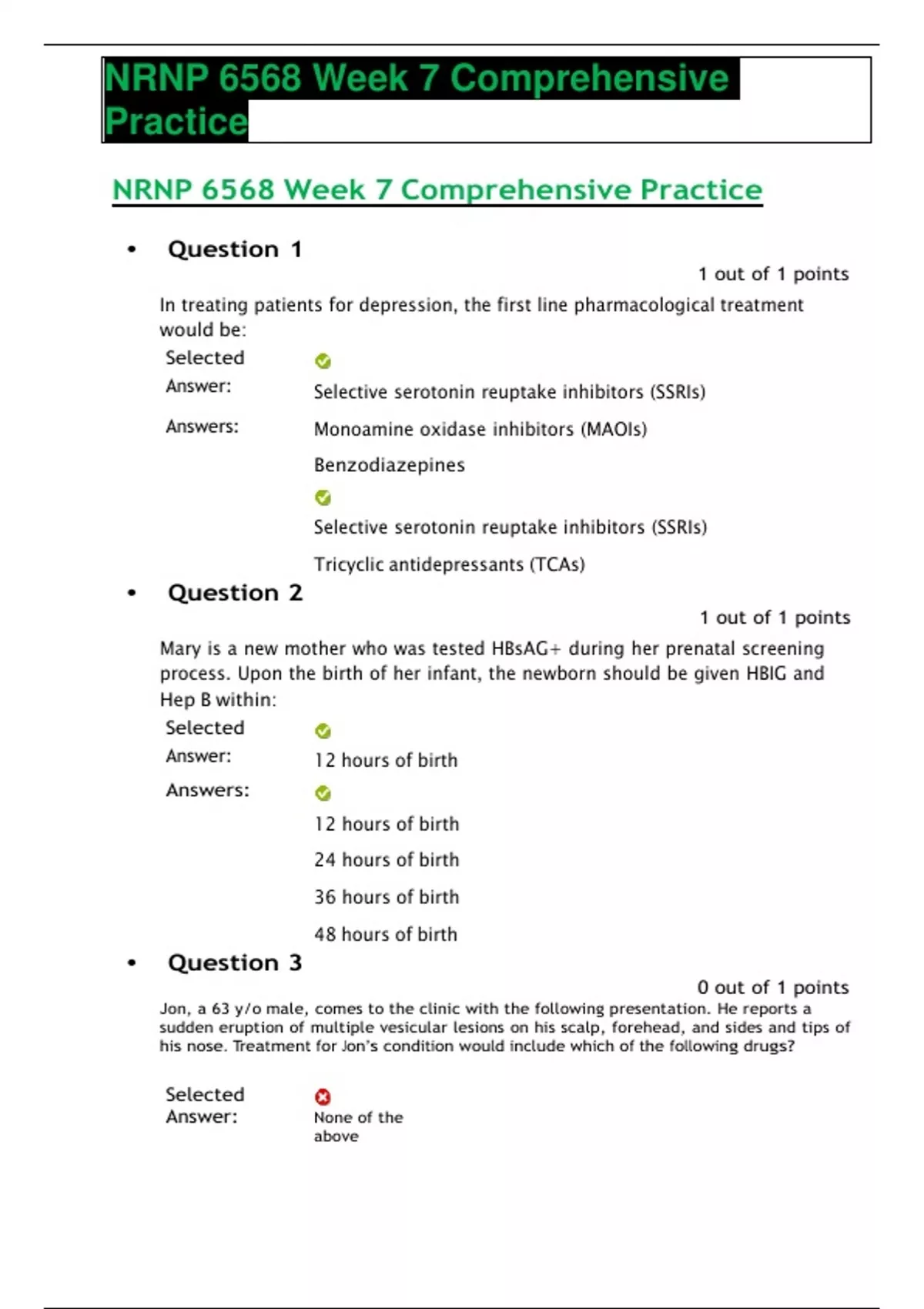 NRNP 6568 Week 7 Comprehensive Practice