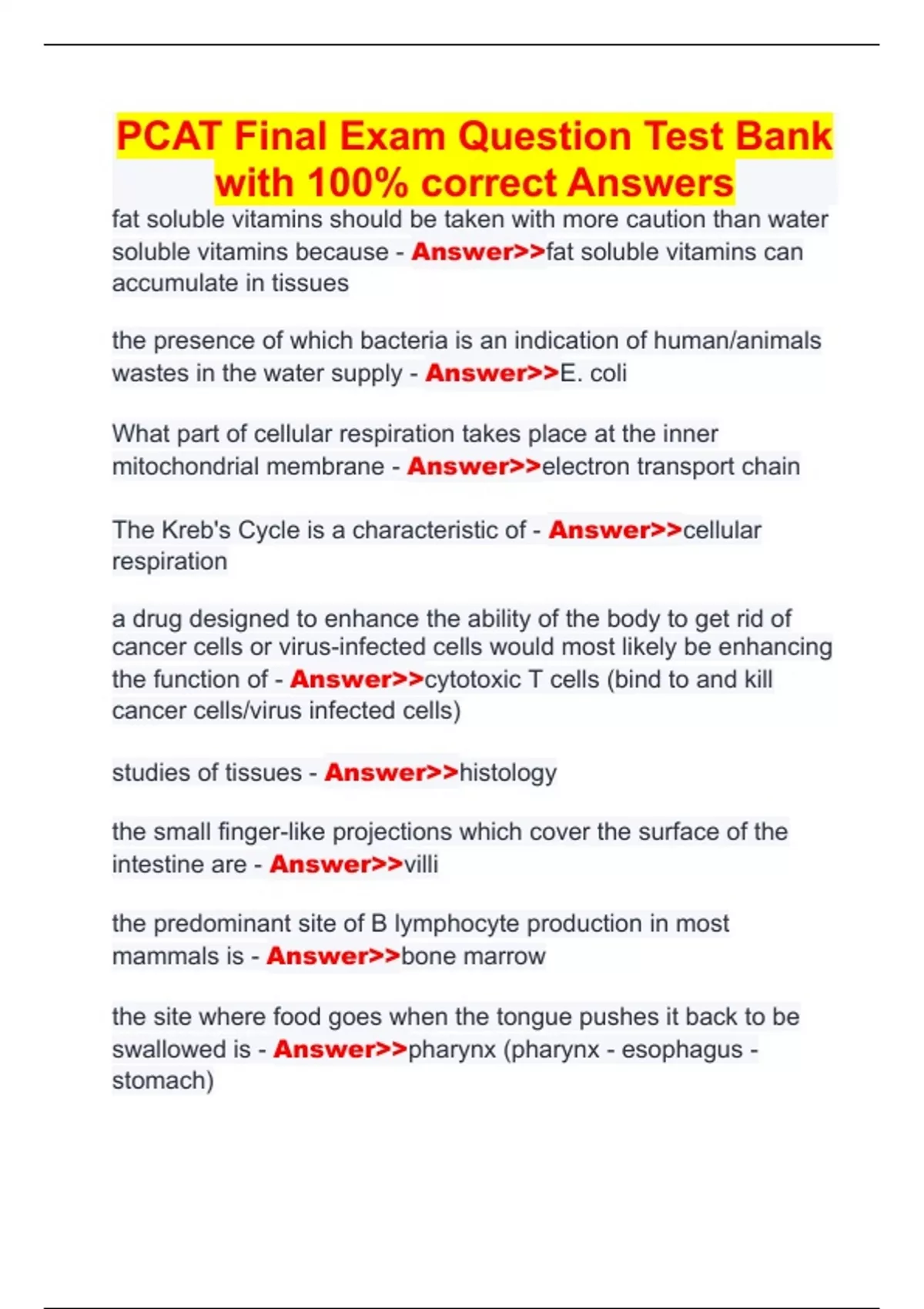 pcat final exam question test bank with 100 corre