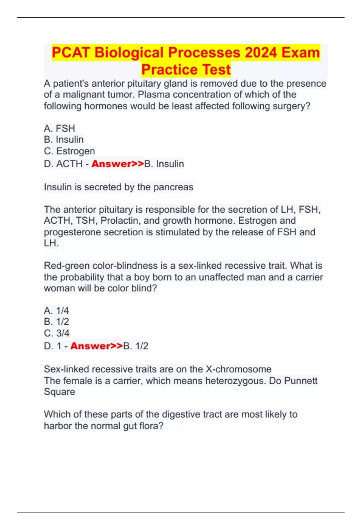 PCAT Biological Processes 2024 Exam Practice Test