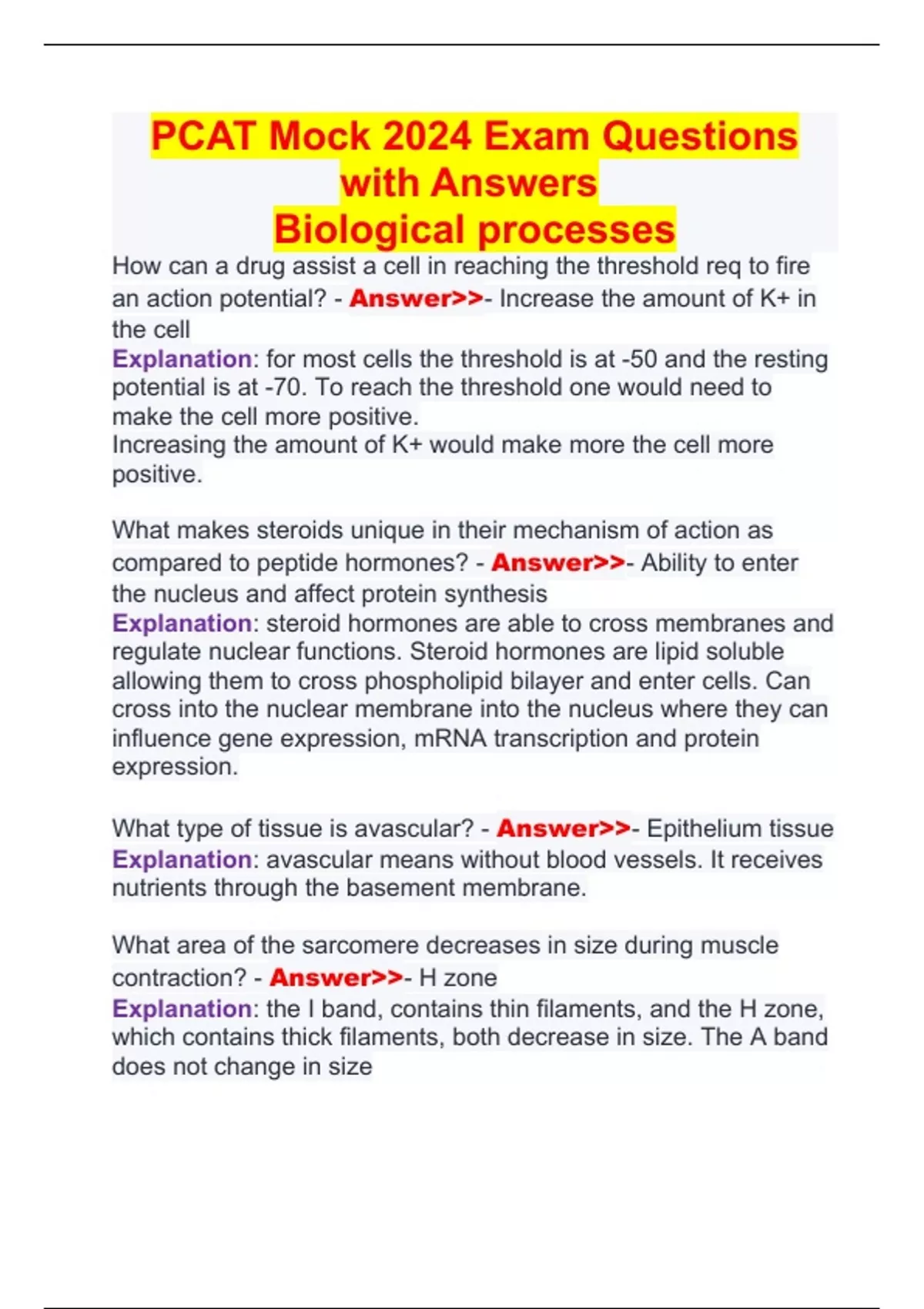PCAT Mock 2024 Exam Questions with Answers Biological processes