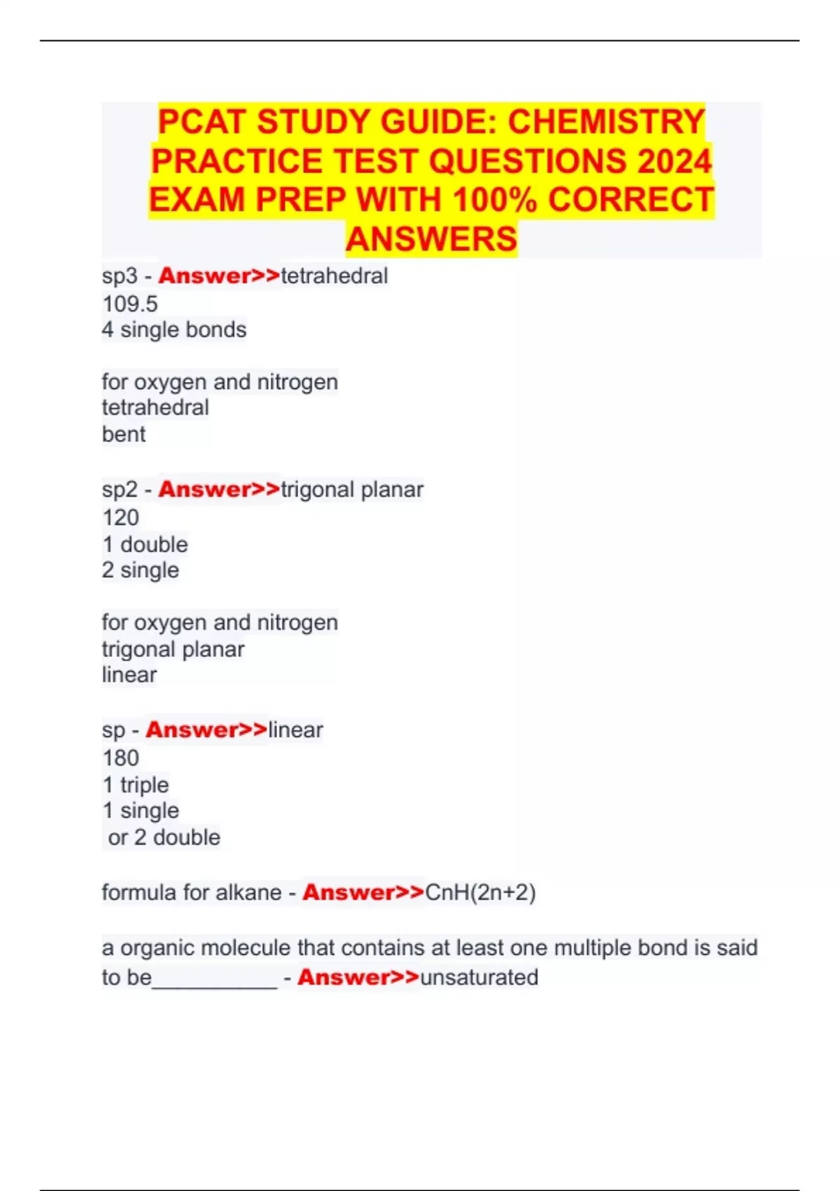PCAT STUDY GUIDE: CHEMISTRY PRACTICE TEST QUESTIONS 2024 EXAM PREP WITH 100% CORRECT ANSWERS