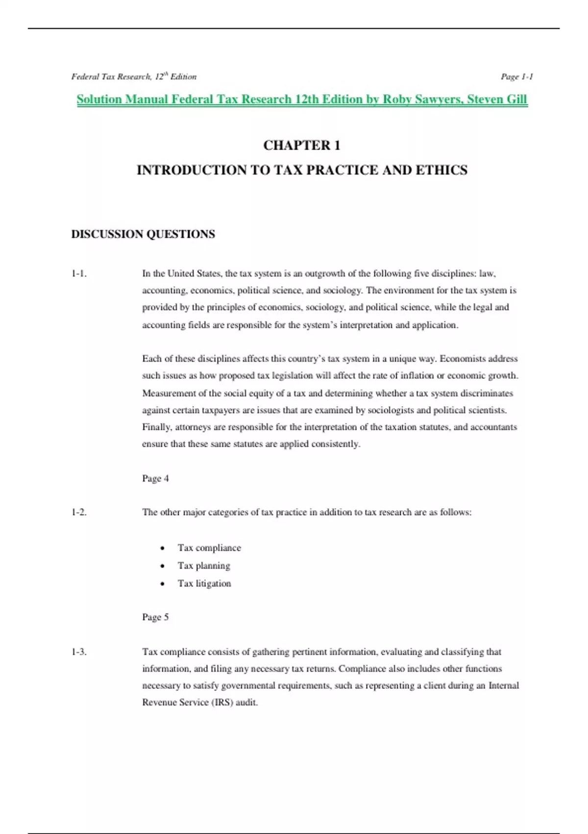 Solution Manual For Federal Tax Research 12th Edition by Roby Sawyers, Steven Gill.