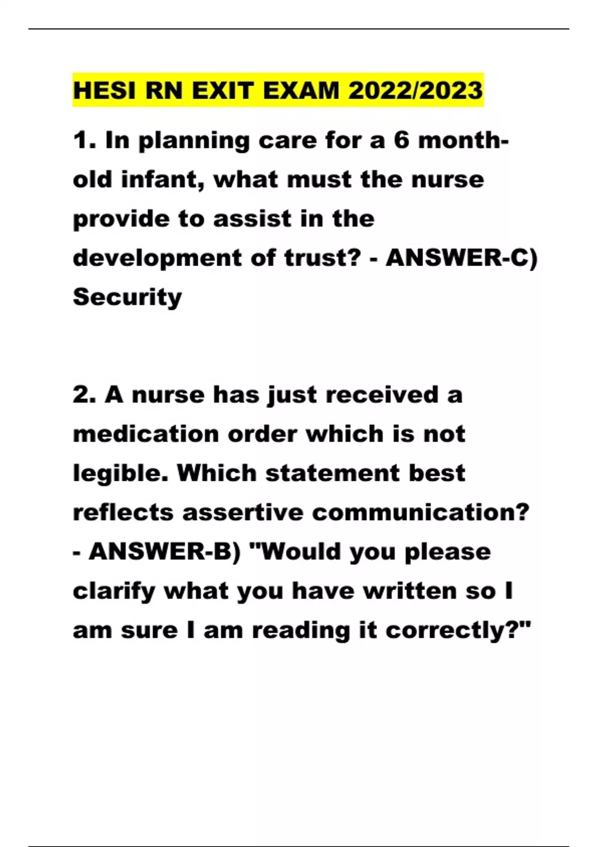 hesi rn exit with both questions and ans
