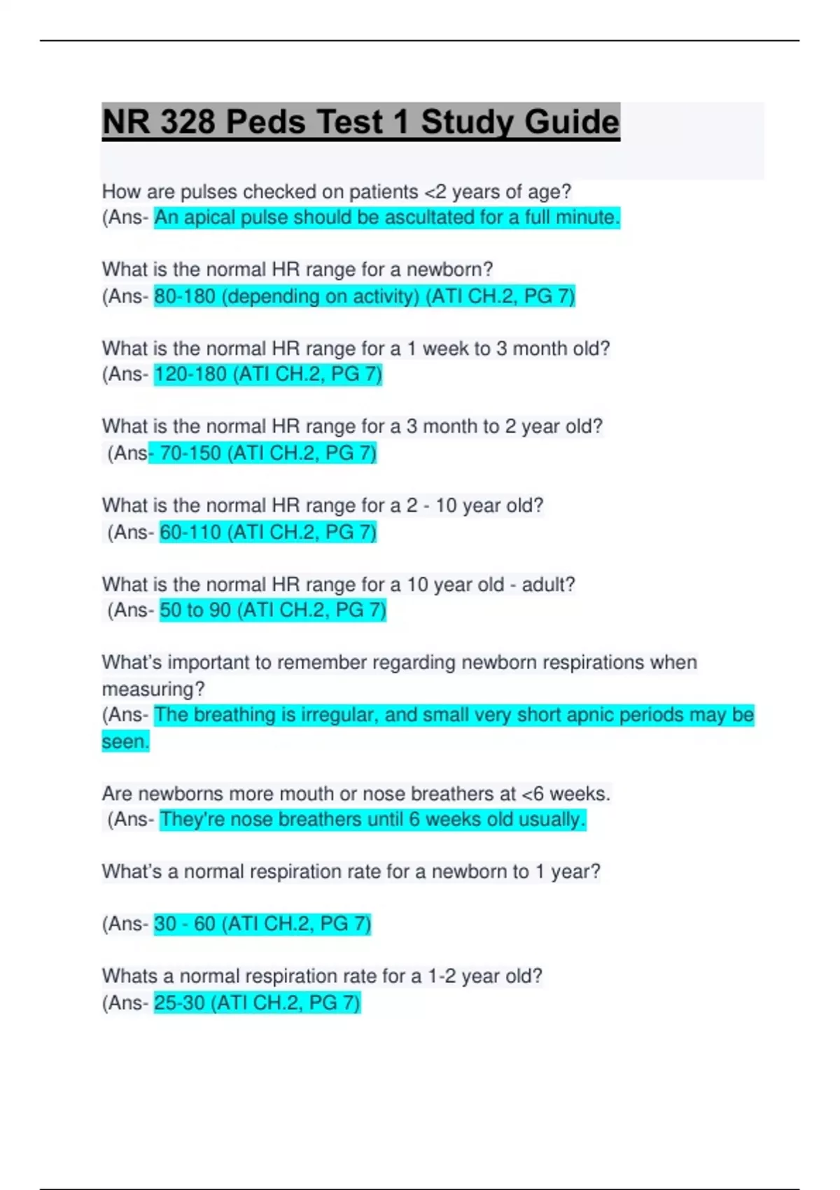 NR 328 Peds Test 1 Study Guide: Questions& Answers: Latest Updated