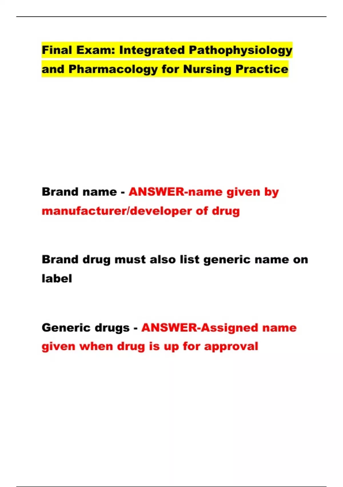 Final Exam: Integrated Pathophysiology and Pharmacology for Nursing Practice GRADE A+