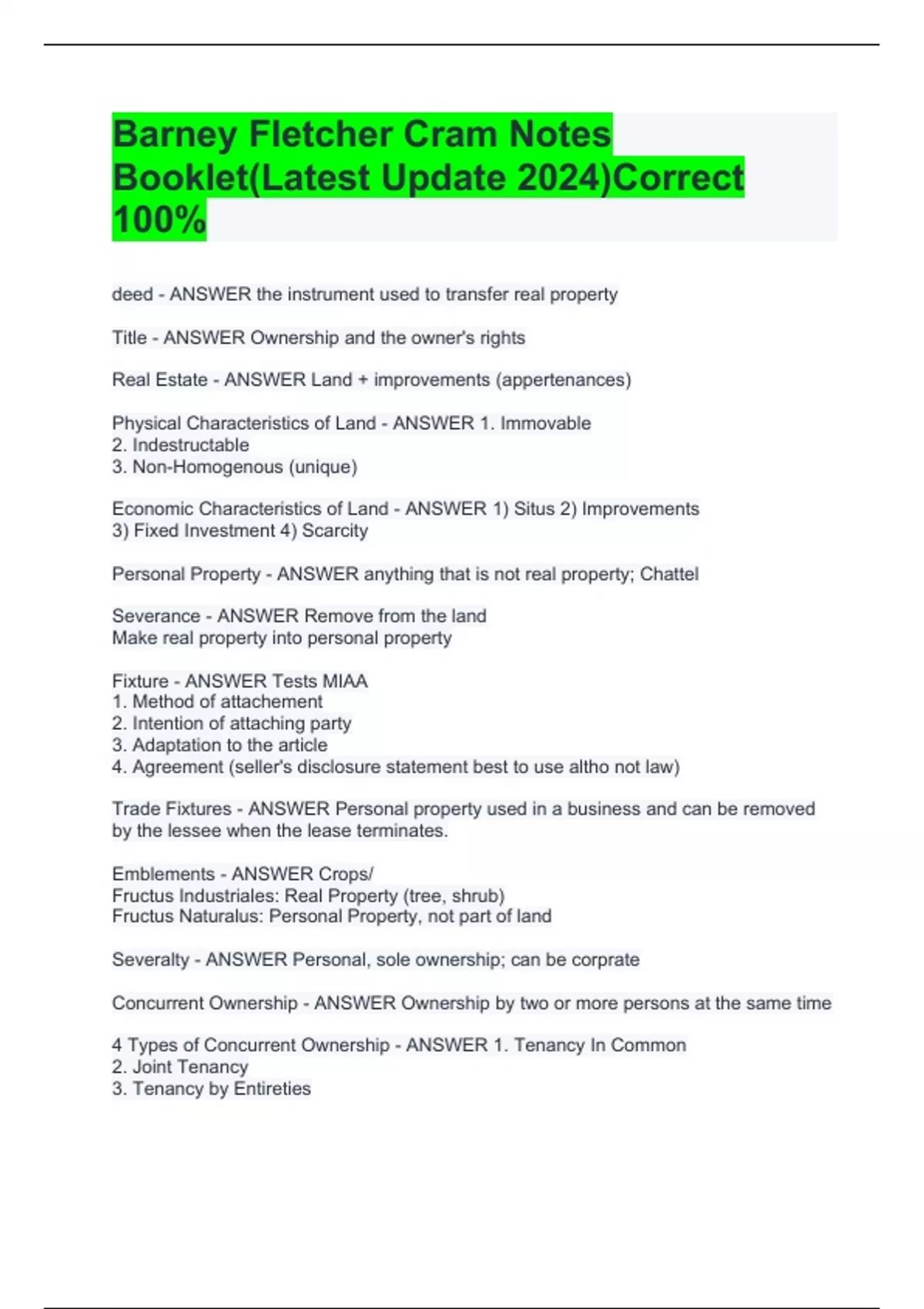 Barney Fletcher Cram Notes Booklet(Latest Update 2024)Correct 100%