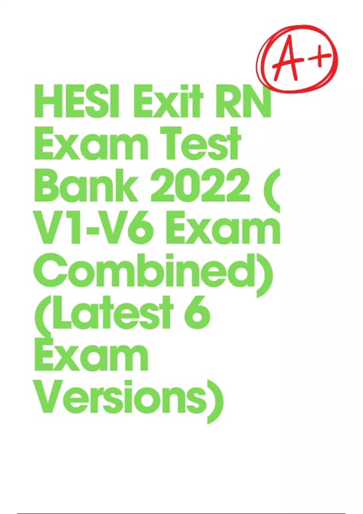 HESI Exit RN Exam Test Bank 2022 ( V1-V6 Exam Combined) (Latest 6 Exam Versions)