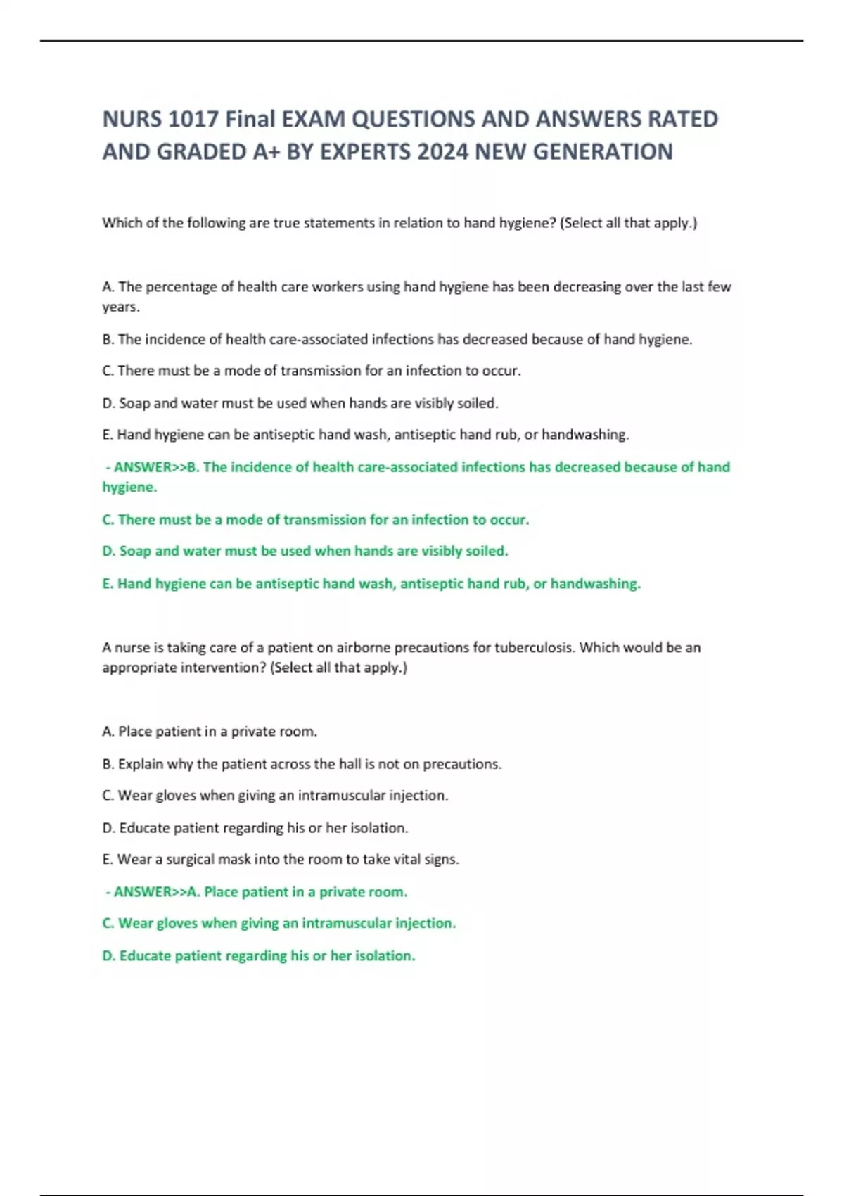 NURS 1017 Final EXAM QUESTIONS AND ANSWERS RATED AND GRADED A+ BY EXPERTS 2024 NEW GENERATION