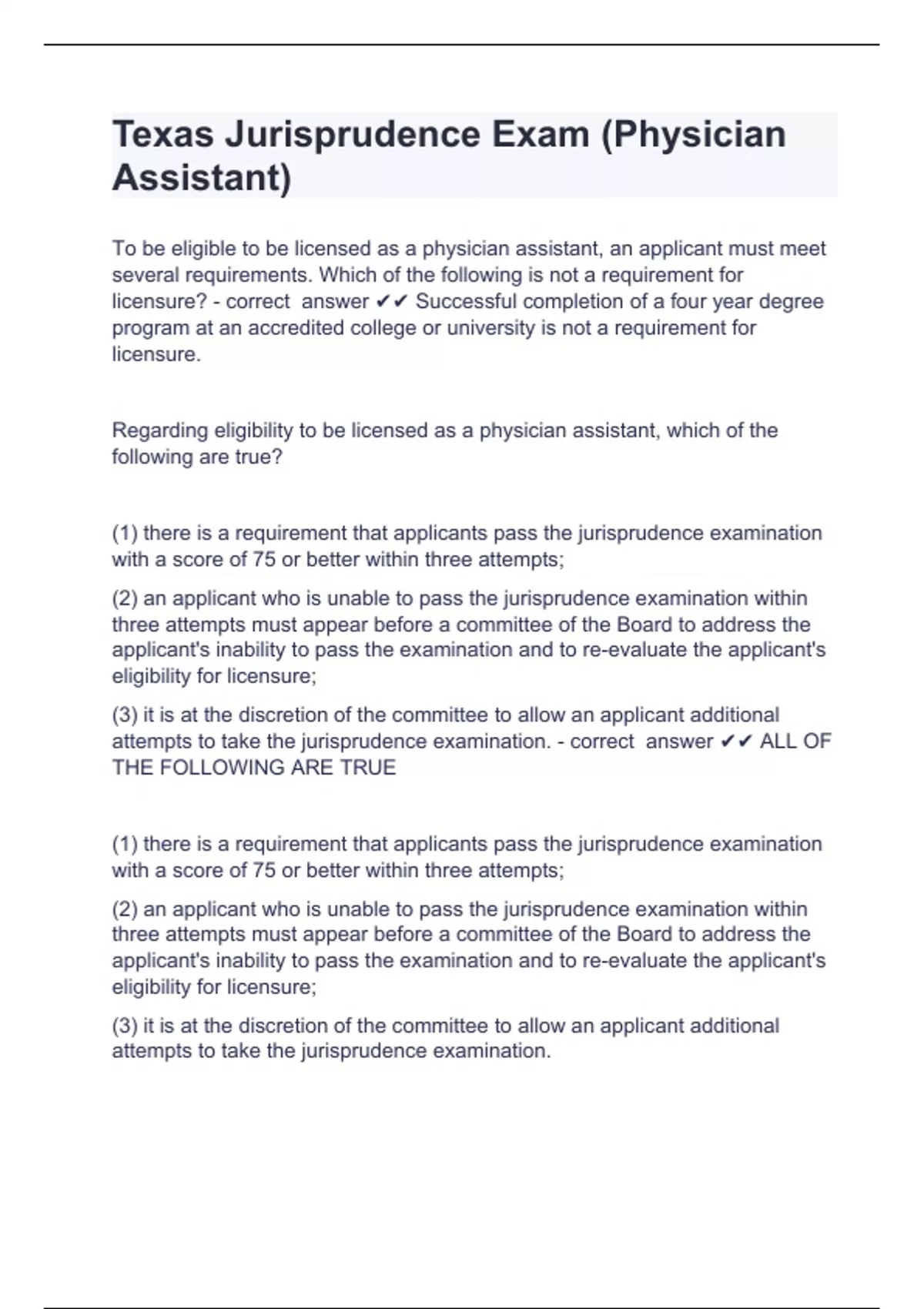 Texas Jurisprudence Exam - RCP fully solved rated A+