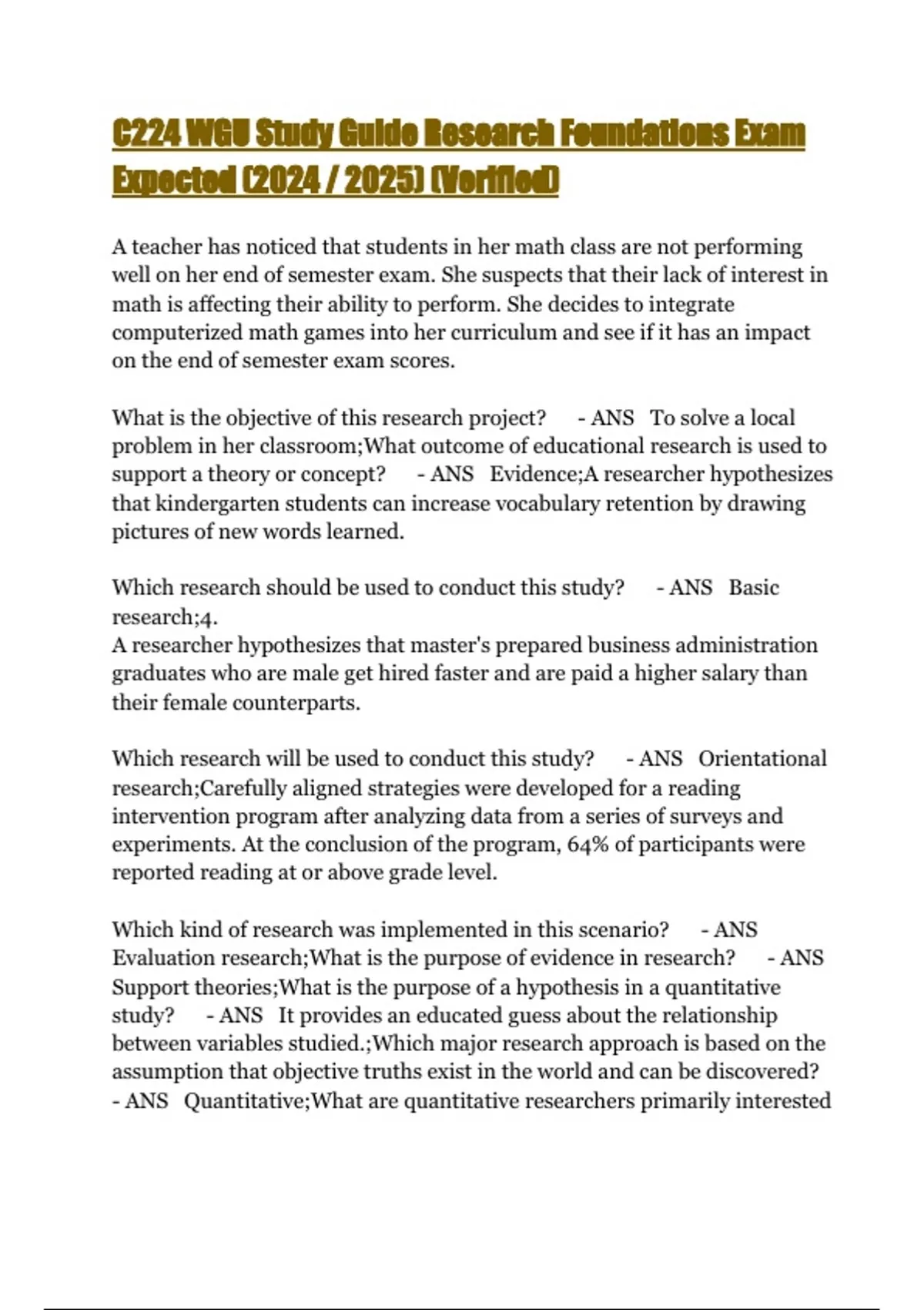C224 WGU Study Guide Research Foundations Exam