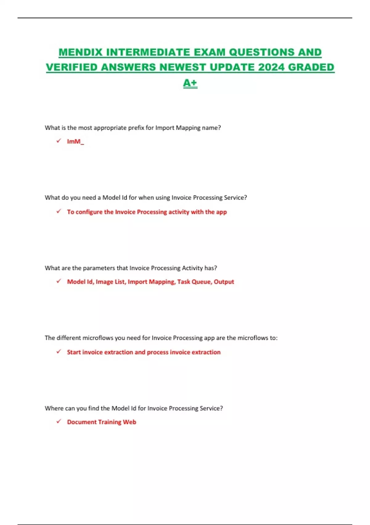MENDIX INTERMEDIATE EXAM QUESTIONS AND VERIFIED ANSWERS NEWEST UPDATE 2024 GRADED A+