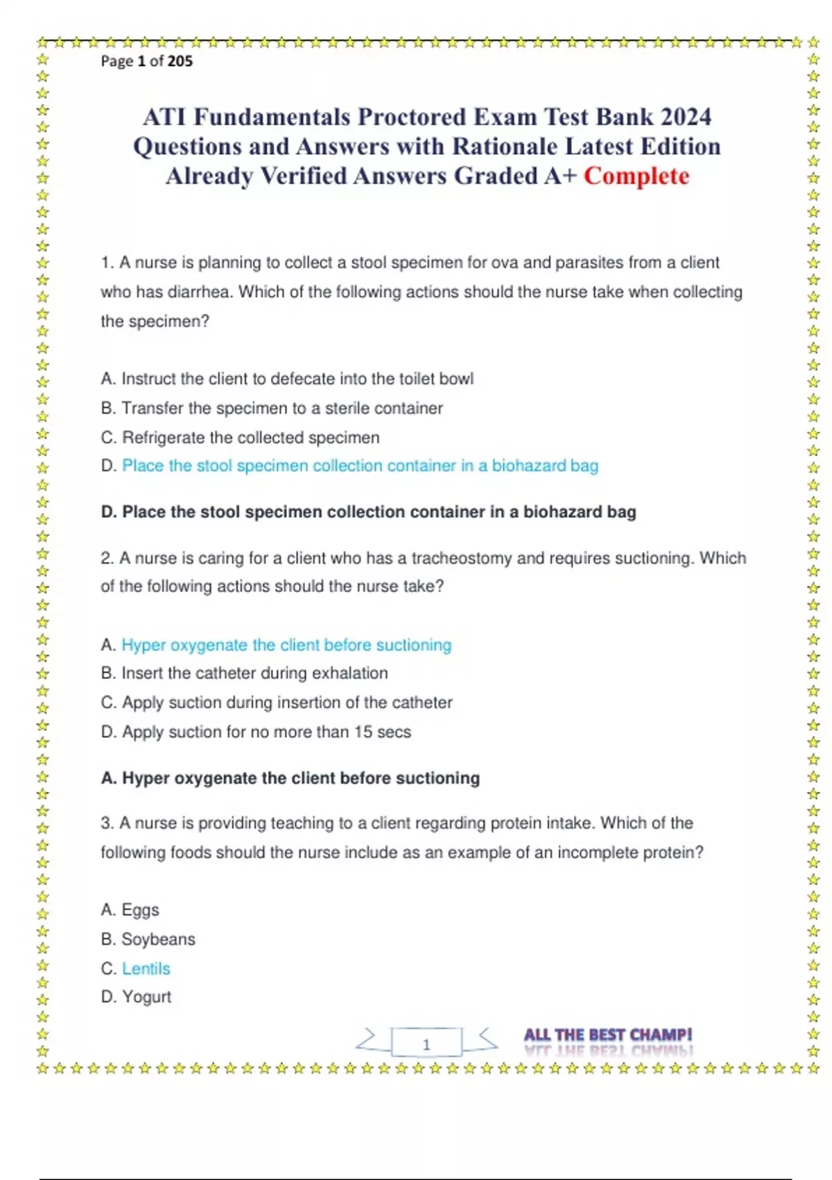 ATI Fundamentals Proctored Exam Test Bank 2024 Questions and Answers with Rationale Latest Edition Already Verified Answers Graded A+ Complete