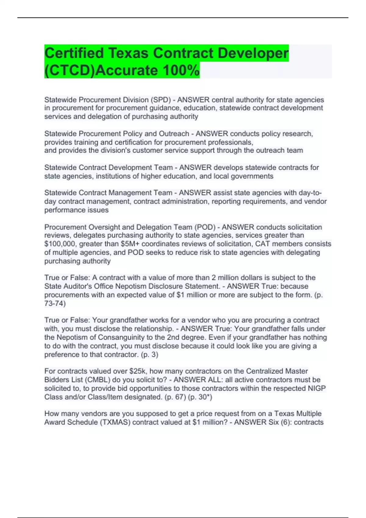 Certified Texas Contract Developer (CTCD)Accurate 100%