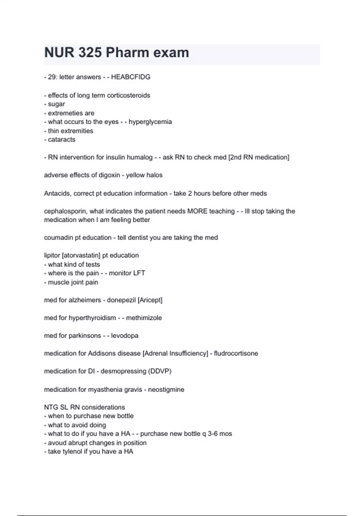 NUR 325 Pharm exam