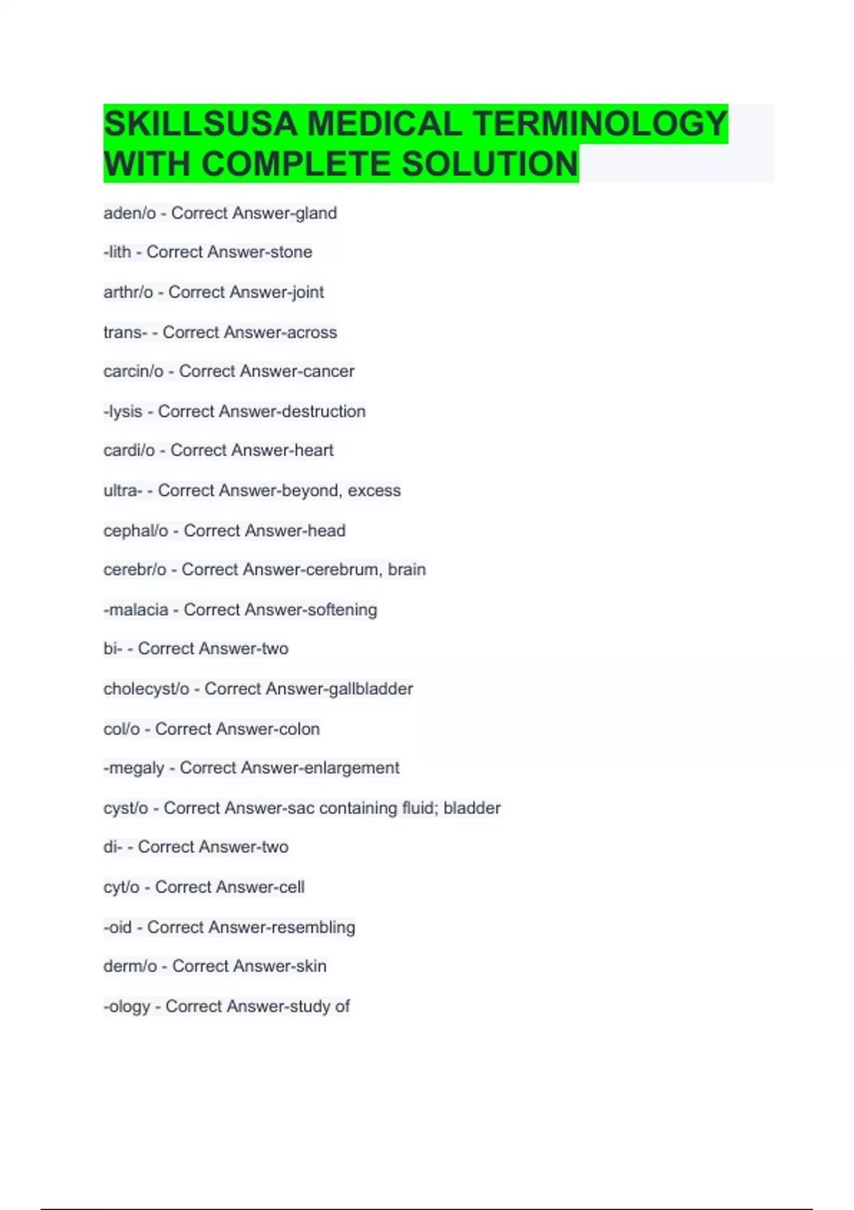 SKILLSUSA MEDICAL TERMINOLOGY WITH COMPLETE SOLUTION