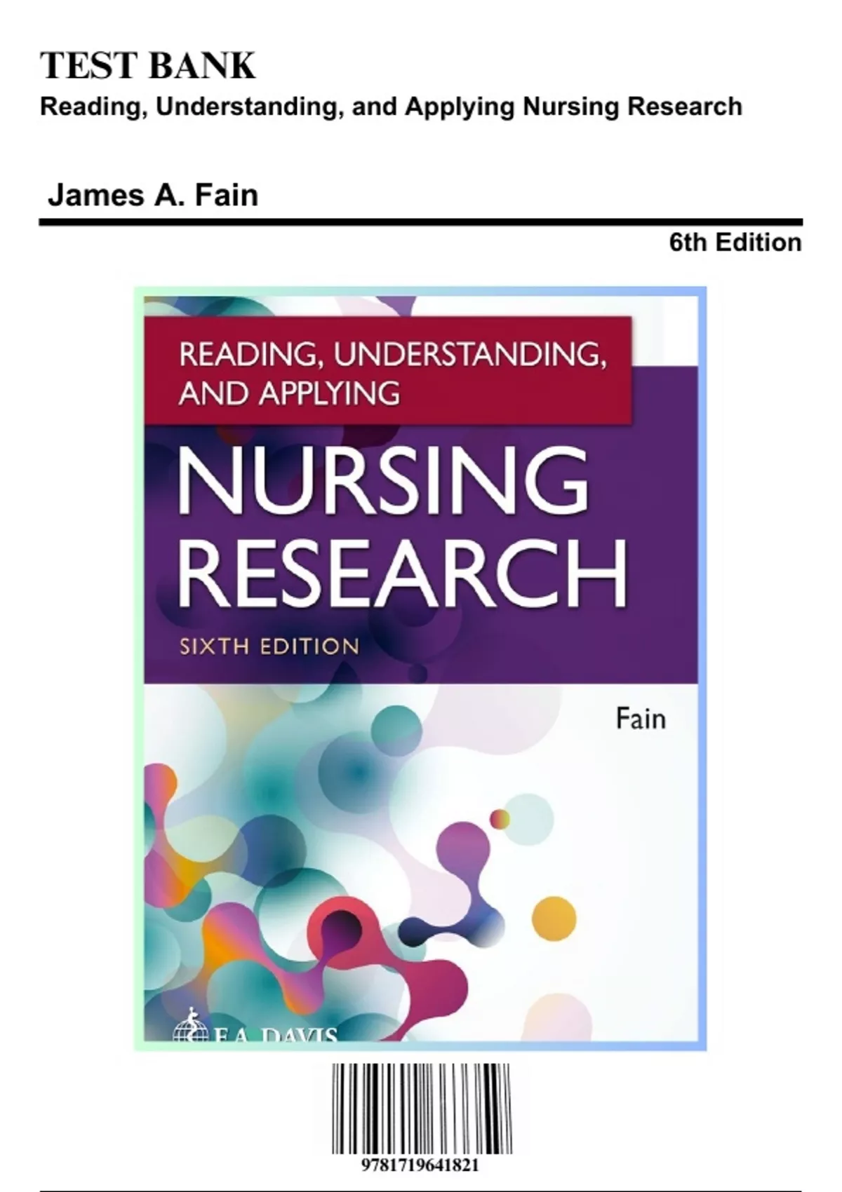 Test Bank for Reading, Understanding, and Applying Nursing Research, 6th Edition by Fain, 9781719641821, Covering Chapters 1-15 | Includes Rationales