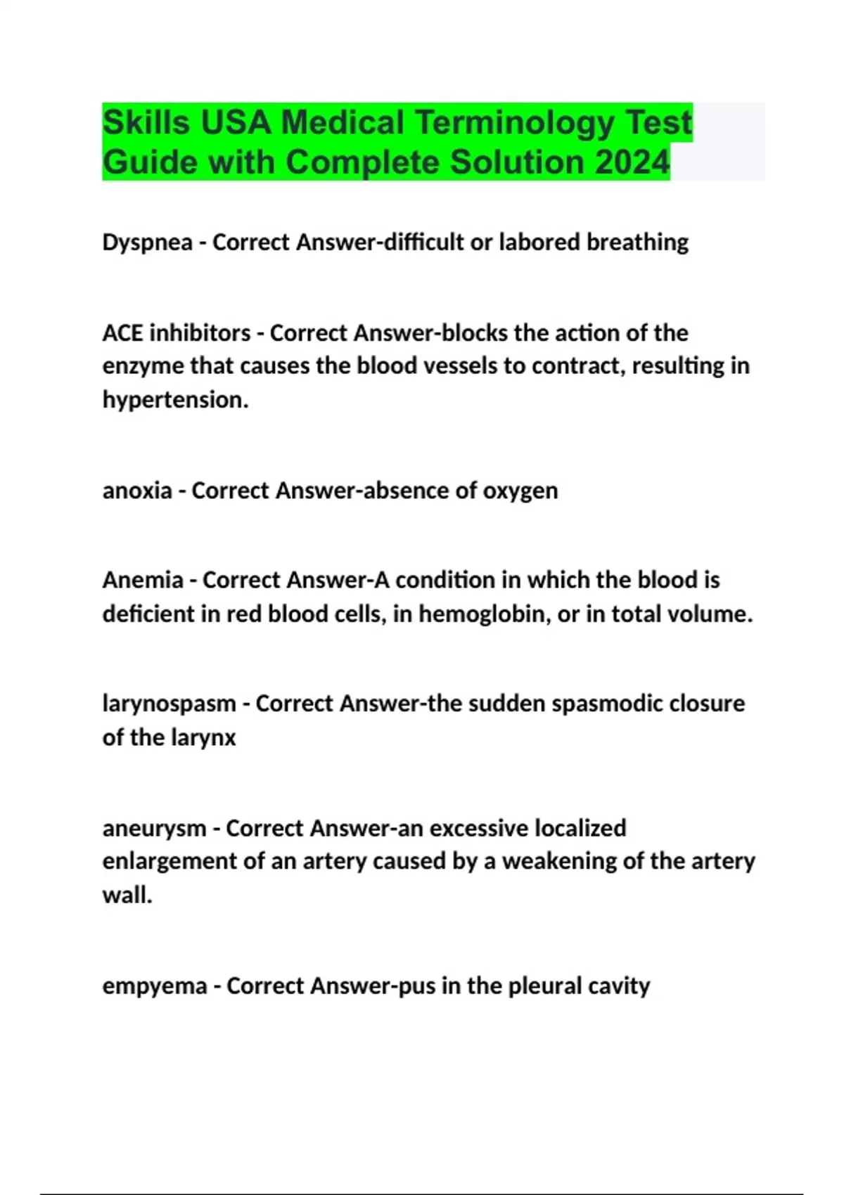 Skills USA Medical Terminology Test Guide with Complete Solution 2024