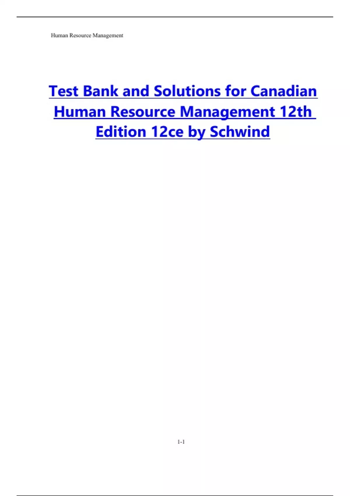 Test Bank for Canadian Human Resource Management, 12th Edition by Hermann Schwind