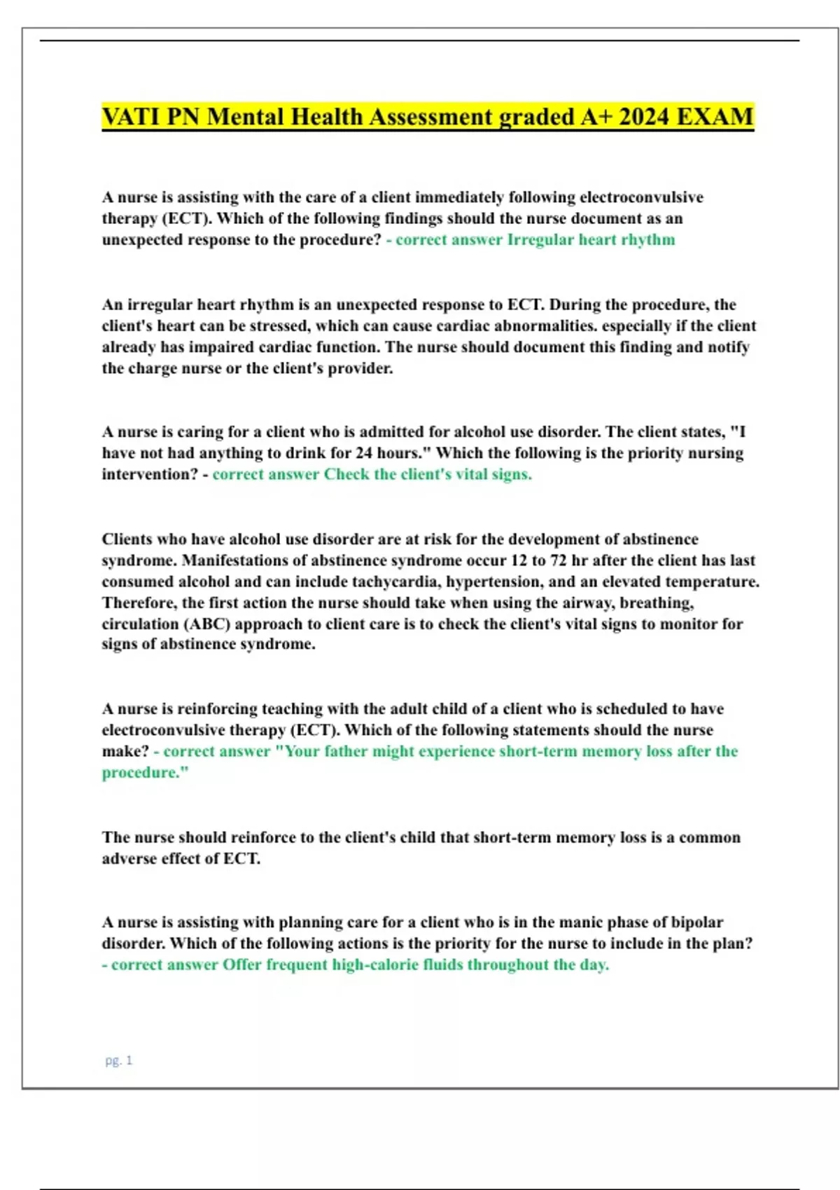 VATI PN Mental Health Assessment graded A+ 2024 EXAM