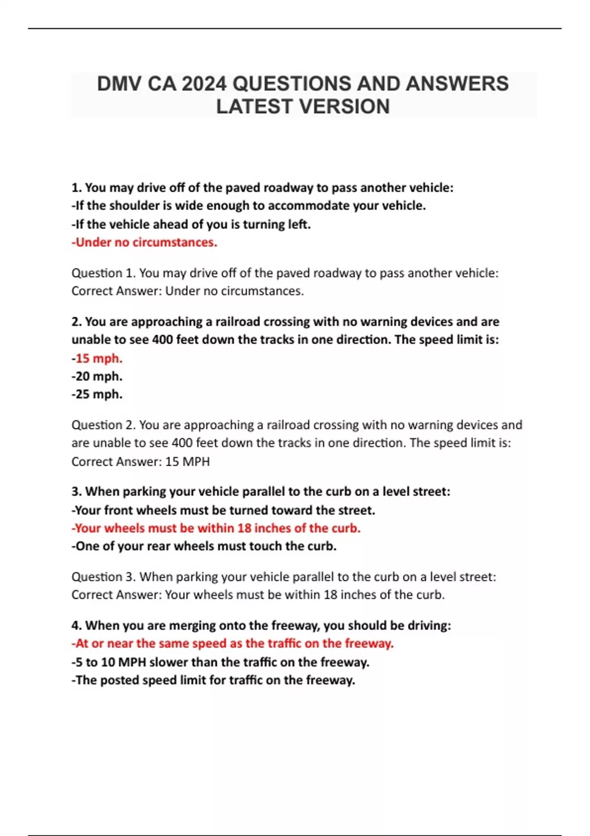DMV CA 2024 QUESTIONS AND ANSWERS LATEST VERSION