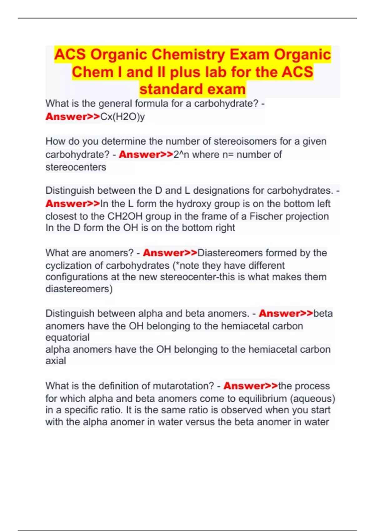 ACS Organic Chemistry Exam Organic Chem I and II plus lab for the ACS standard exam
